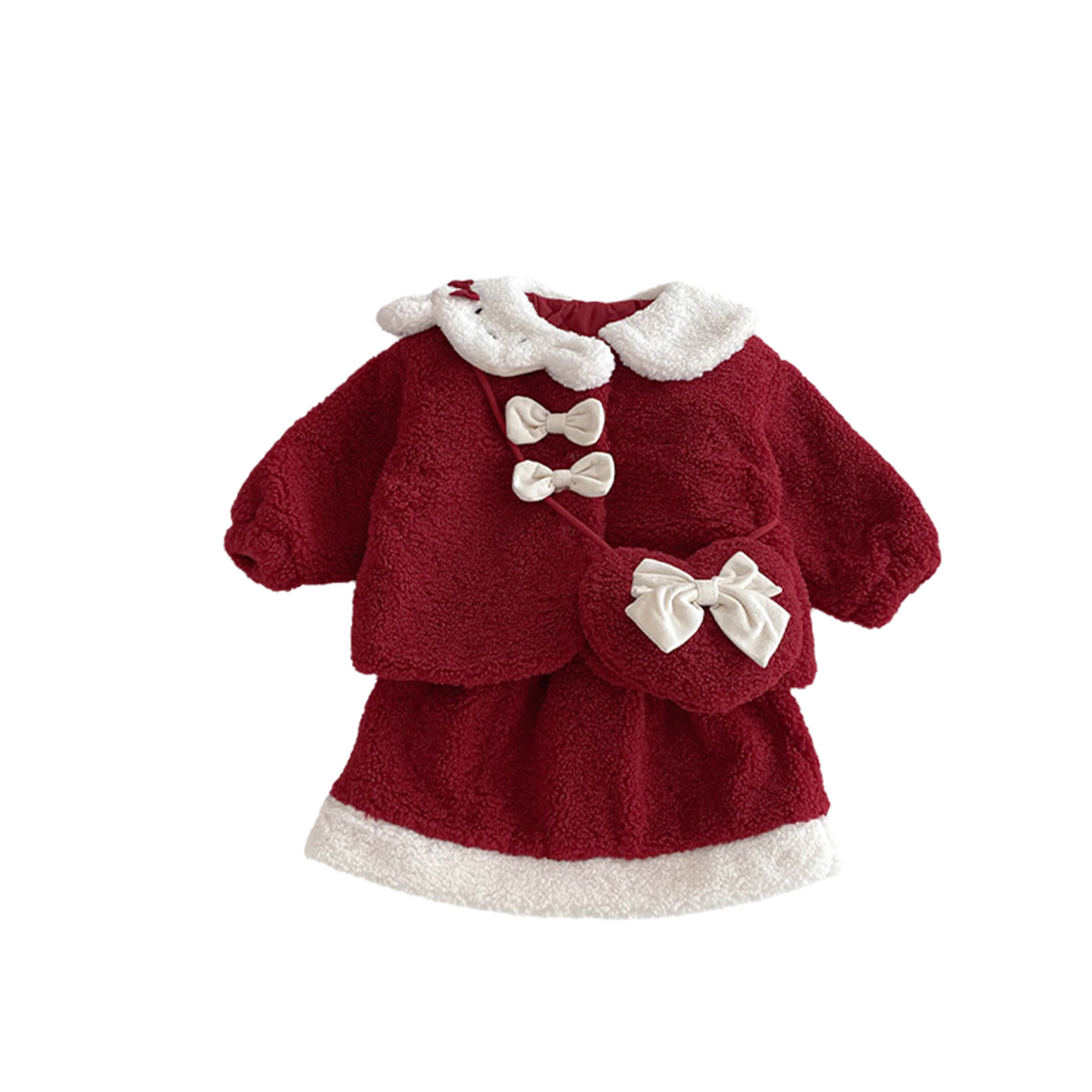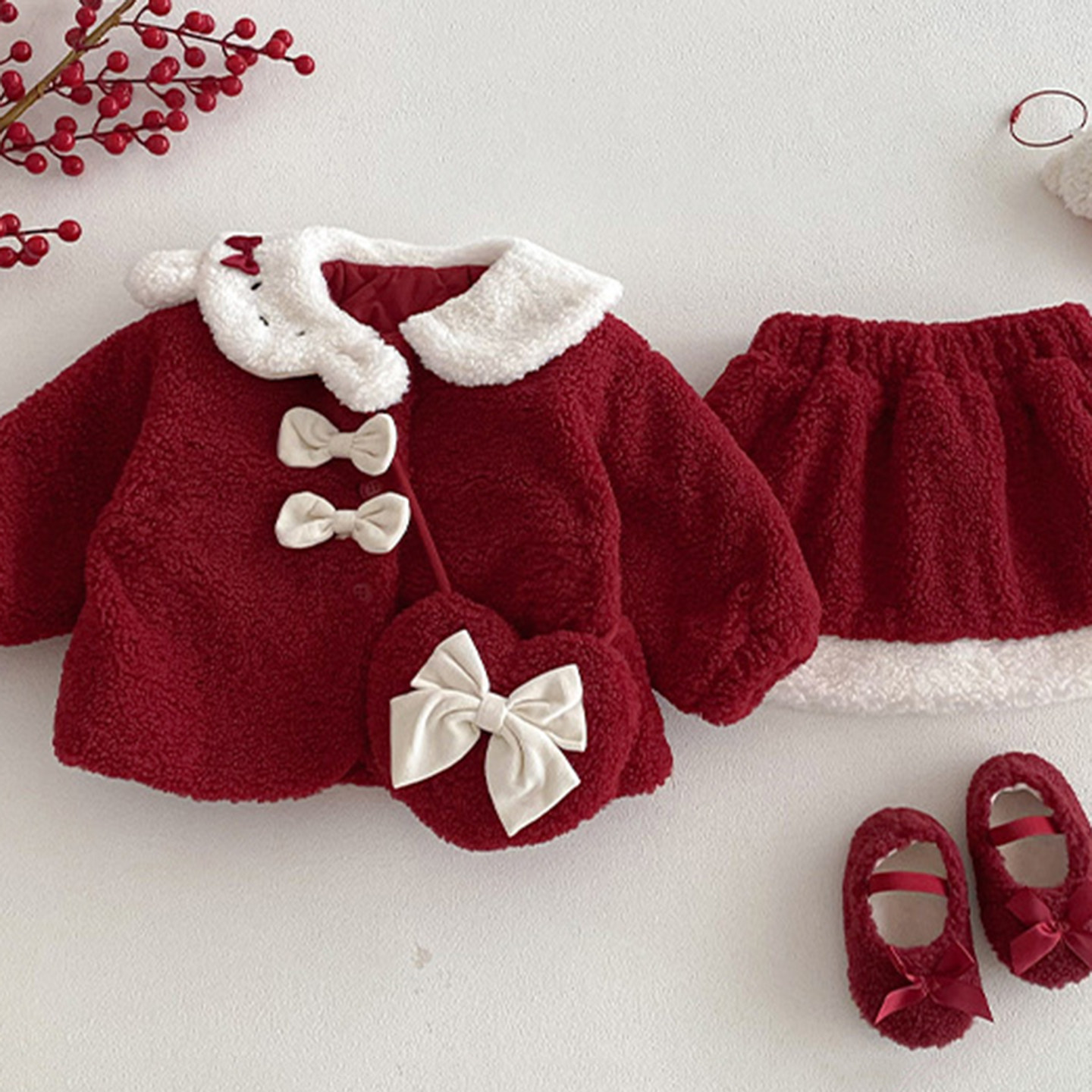 周岁女宝礼服女童冬季连衣裙套装羊羔绒拜年服婴儿新年夹棉公主裙