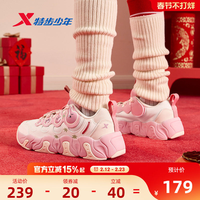 福宝鞋|特步童鞋冬季新年儿童运动女童防滑耐磨鞋子中大童休闲鞋