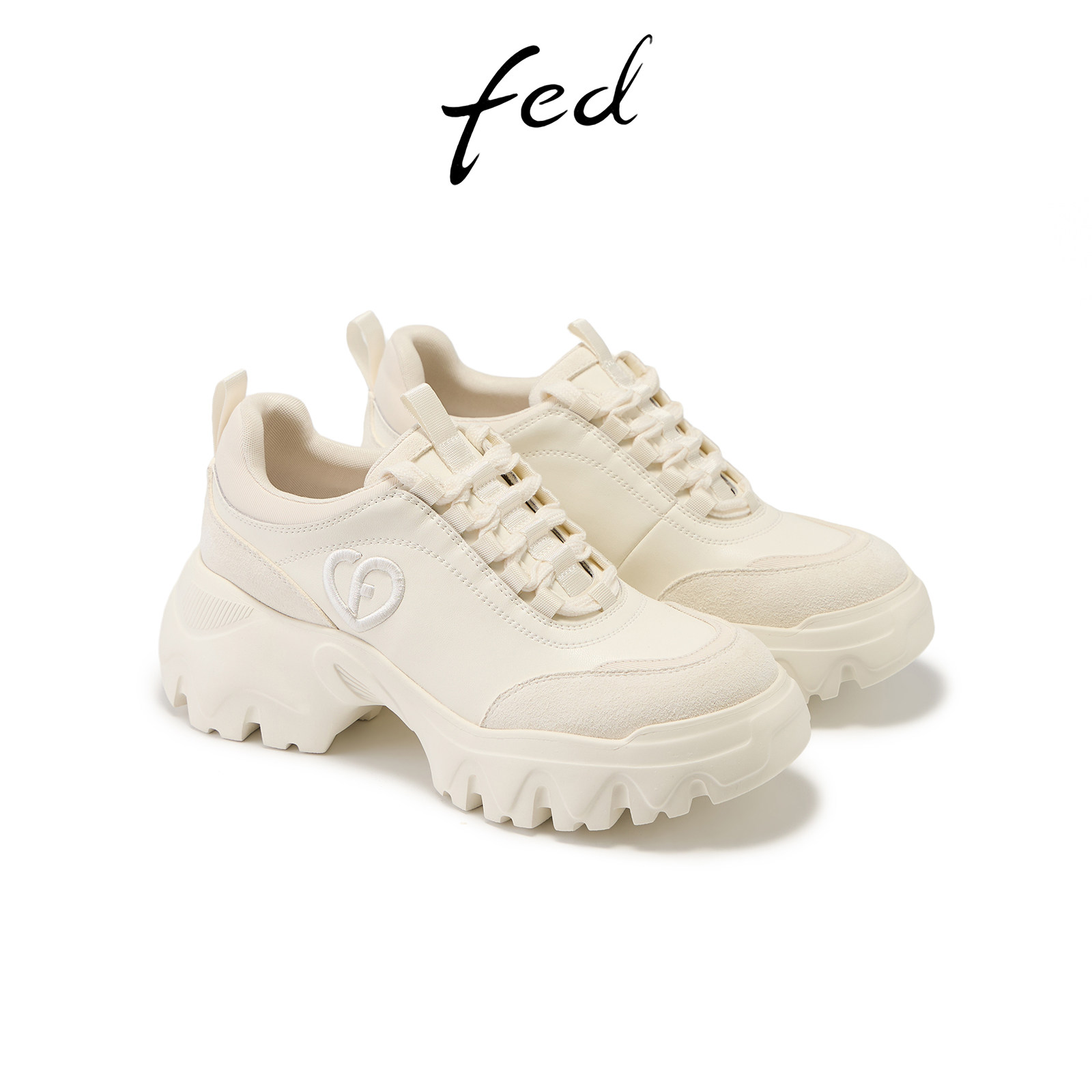 fed云朵印章厚底鞋春季新款女鞋白色老爹鞋休闲增高鞋女款YAB605