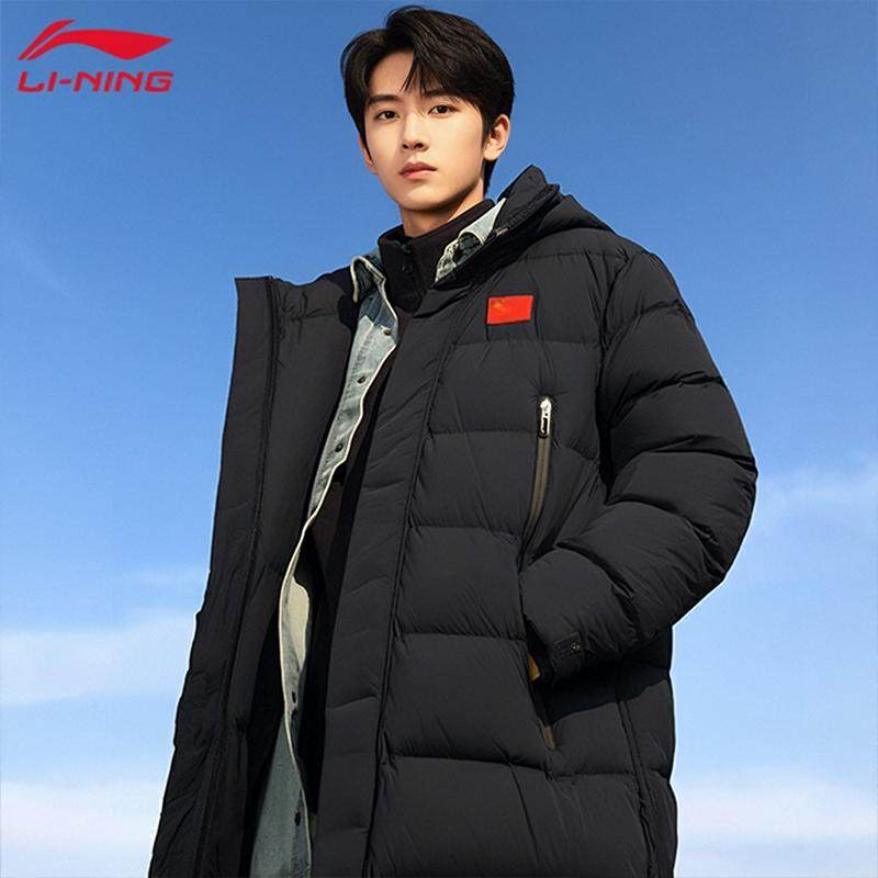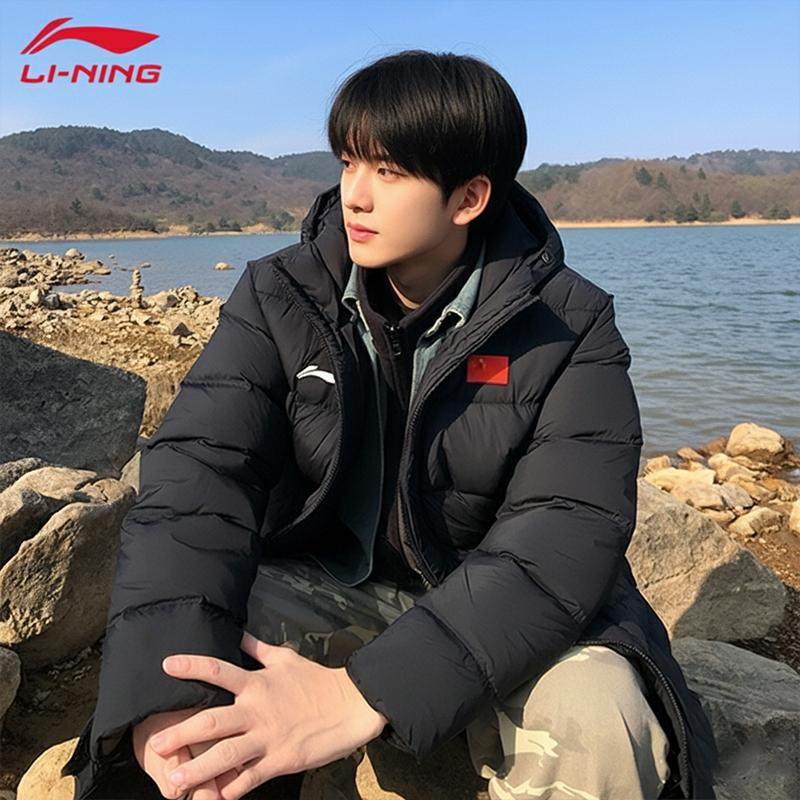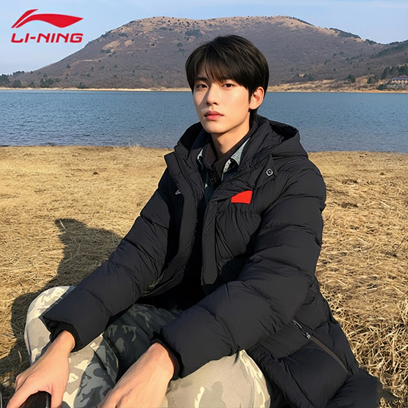 李宁羽绒服男2026新款初中生防风连帽通勤休闲男中长款保暖羽绒服