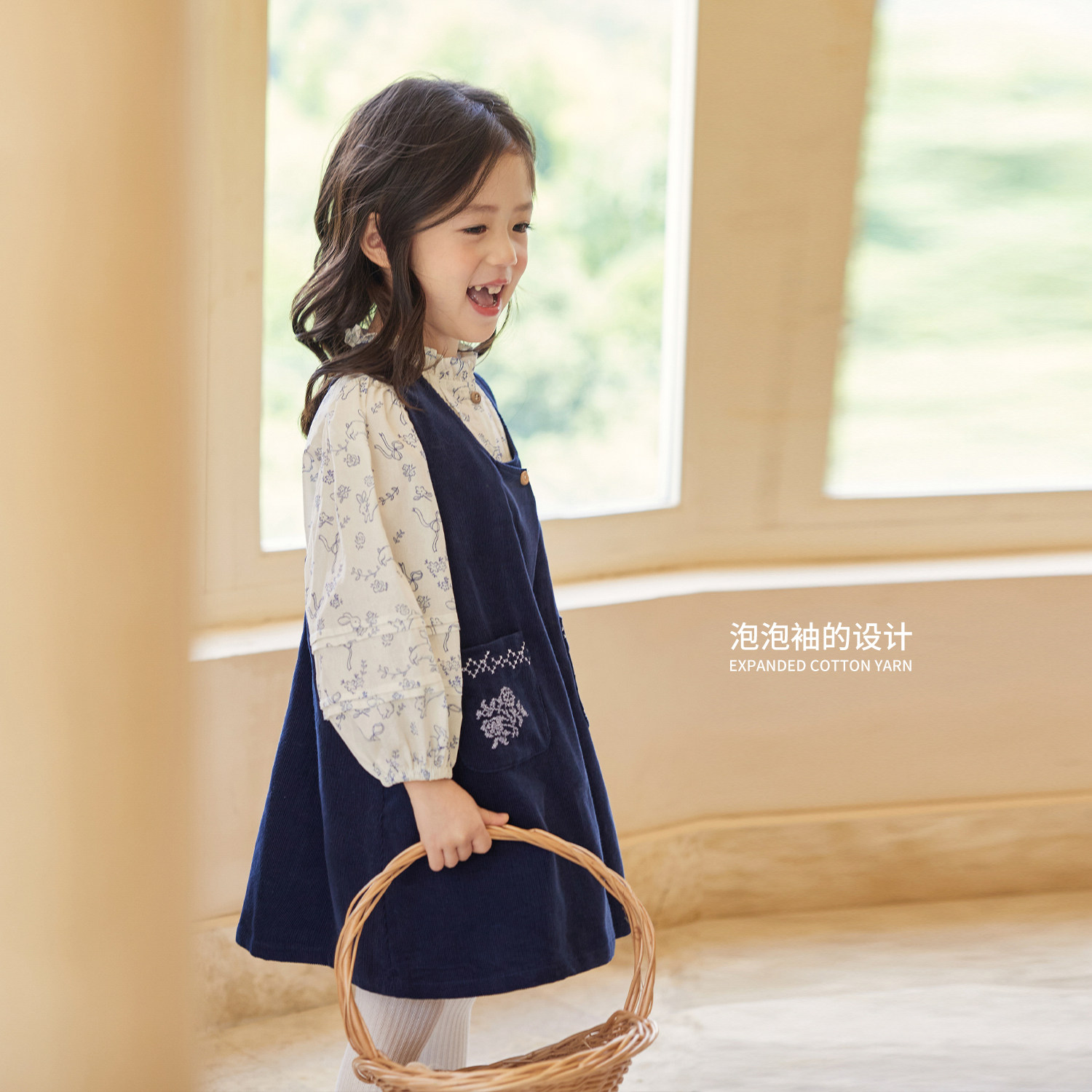 小O宝童装 宝宝森系连衣裙女洋气2026春装新款女童灯芯绒背带裙