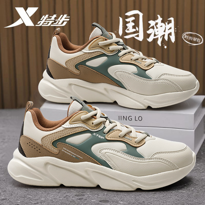 特步男鞋春季2026新款软底轻便休闲鞋子正品复古皮面防水运动鞋男