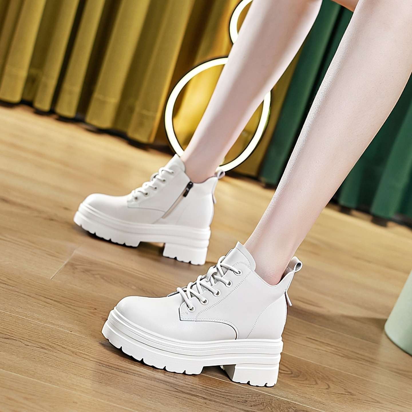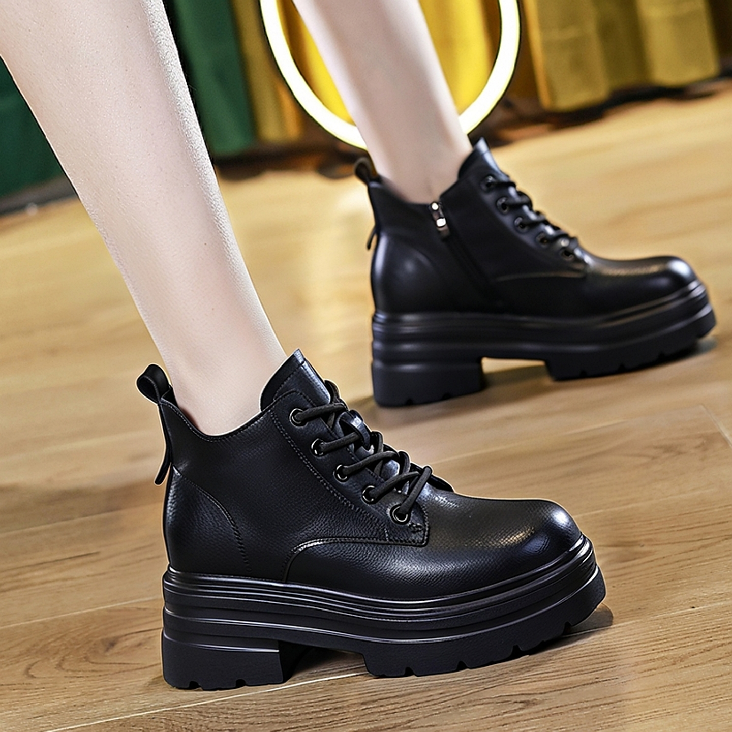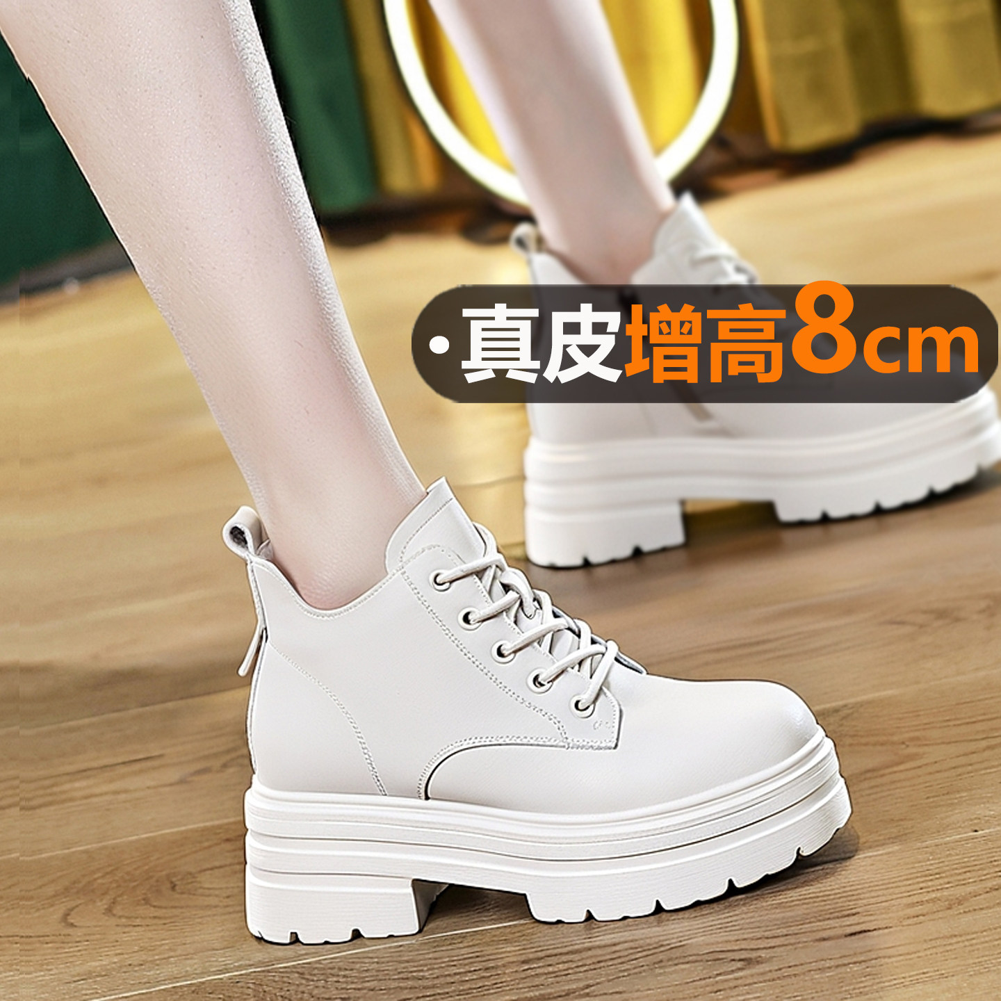 8cm小短靴女内增高低帮马丁靴2026新款秋季小个子真皮厚底小皮鞋
