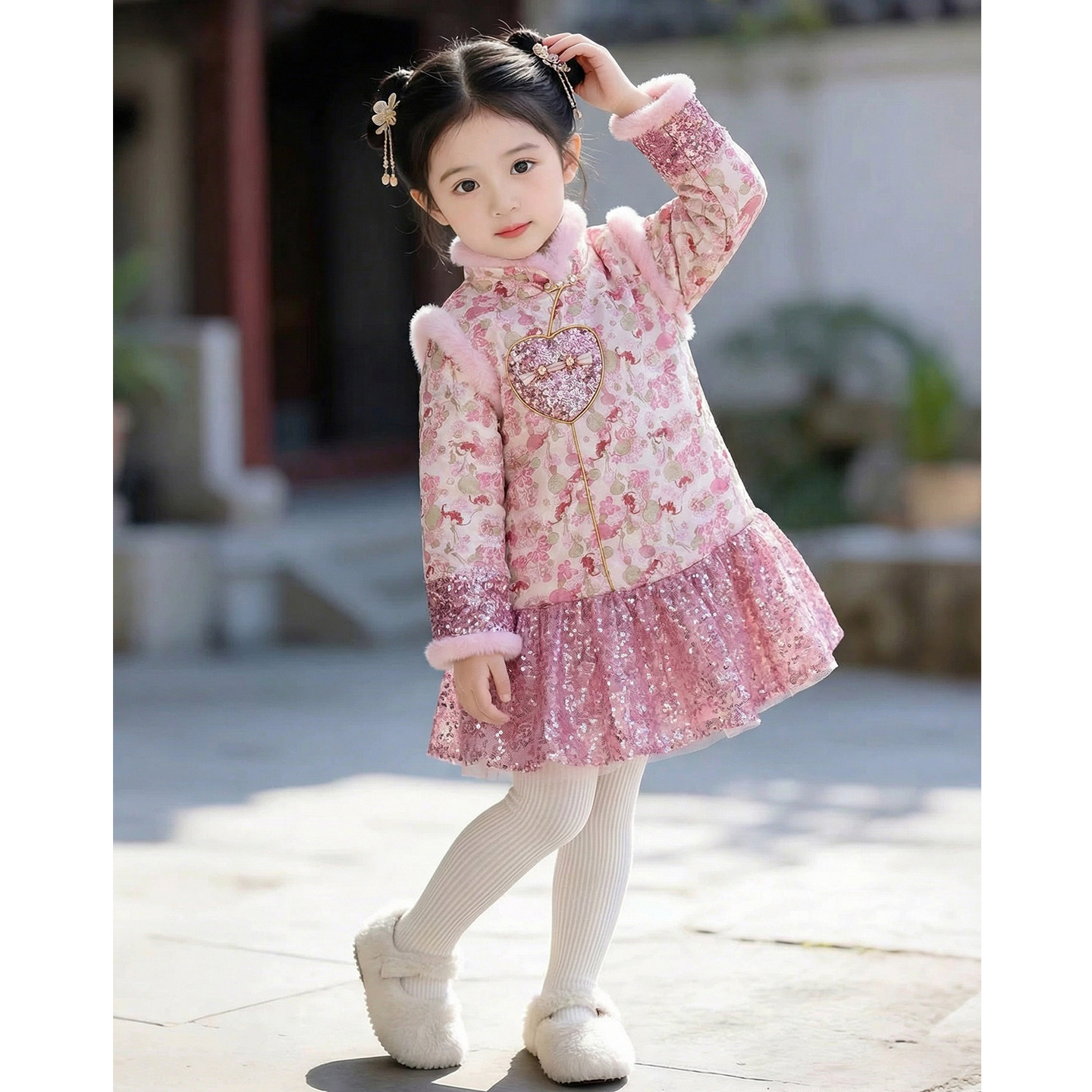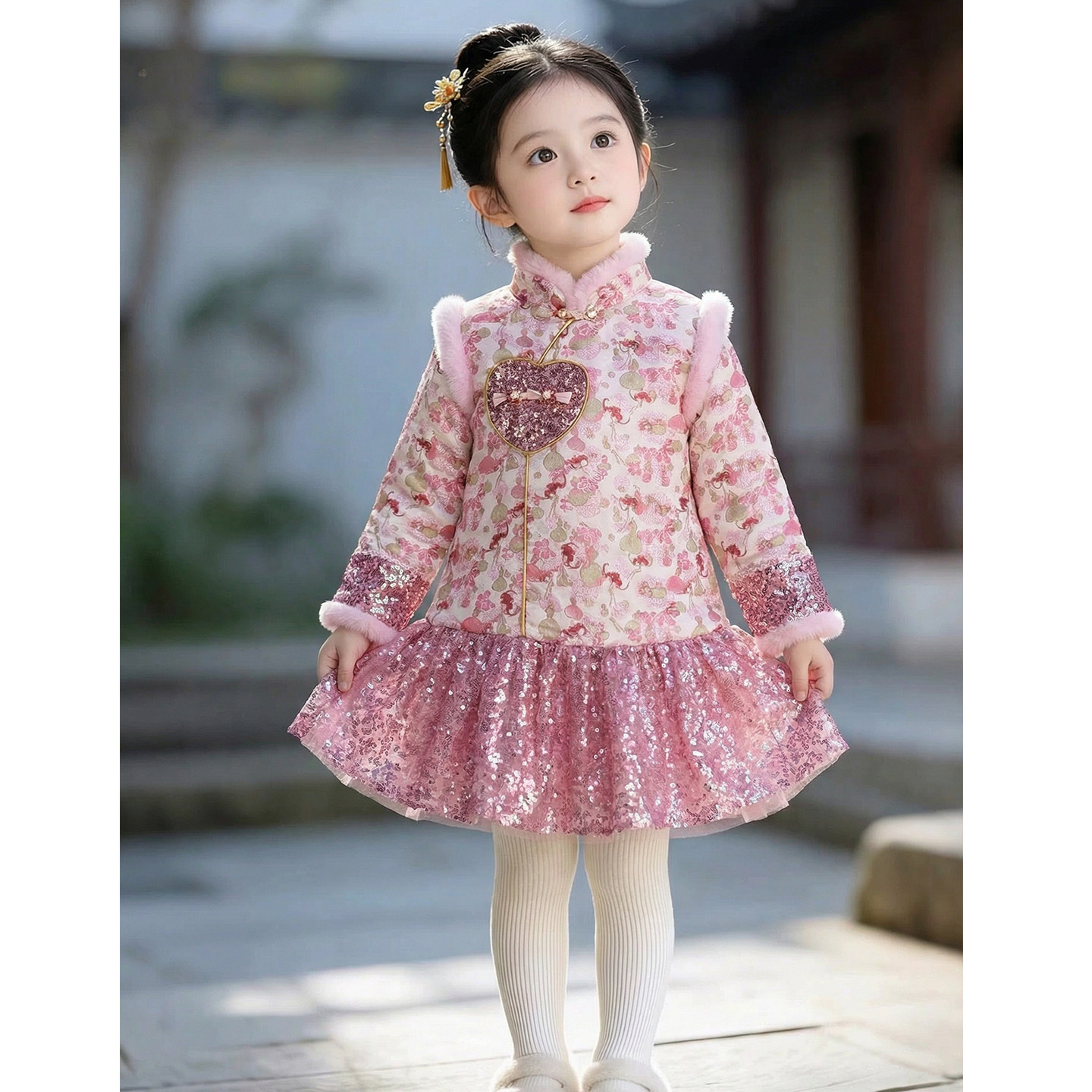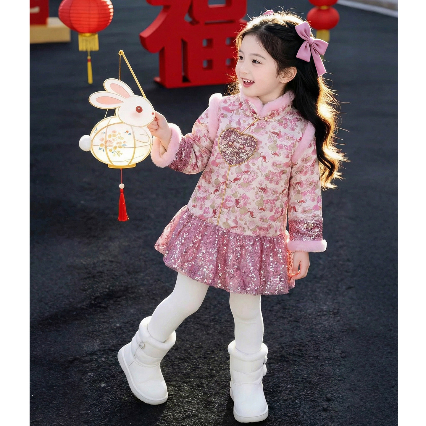 女童连衣裙2026新款冬装儿童网红洋气爆款加厚公主裙女孩新年裙子