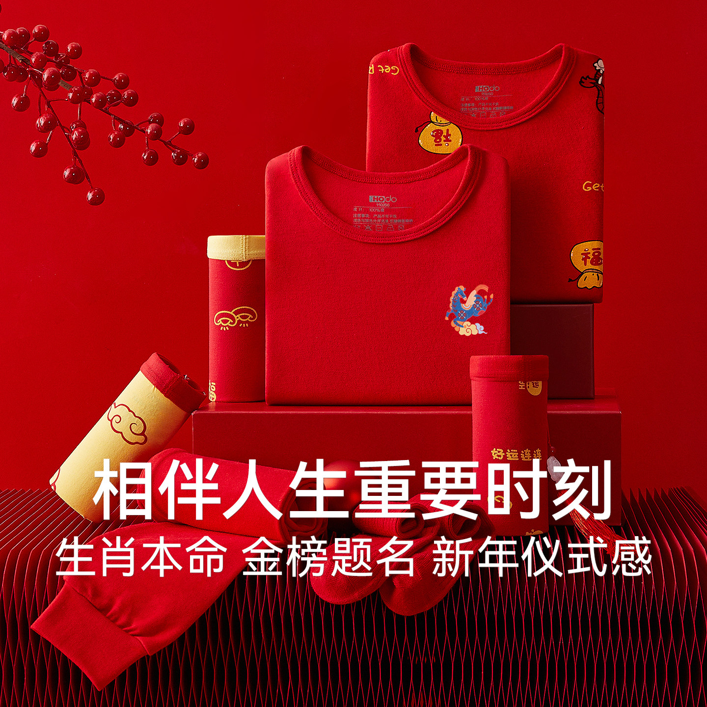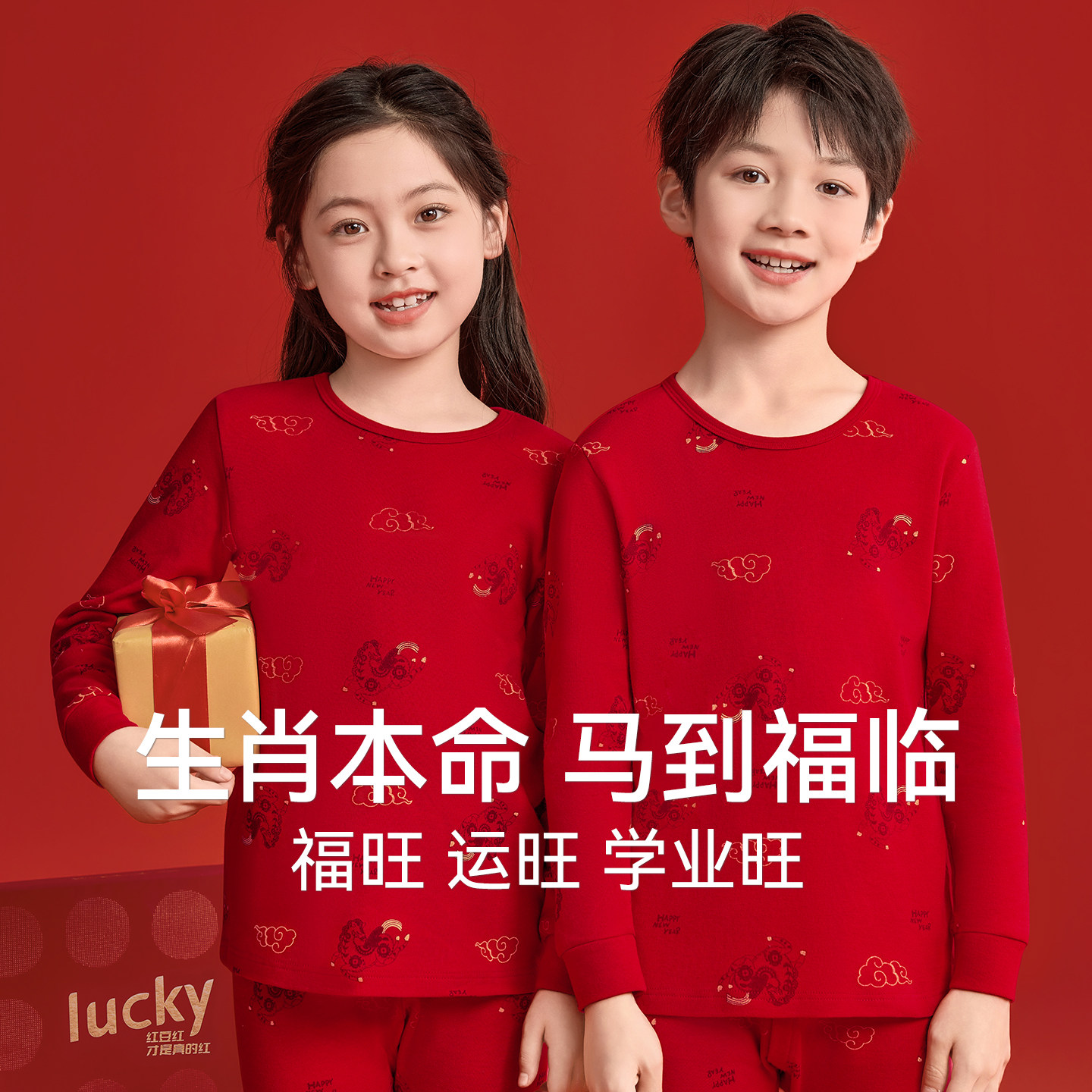 红豆青少年本命年内衣马年纯棉保暖初中高中学生红色秋衣秋裤套装