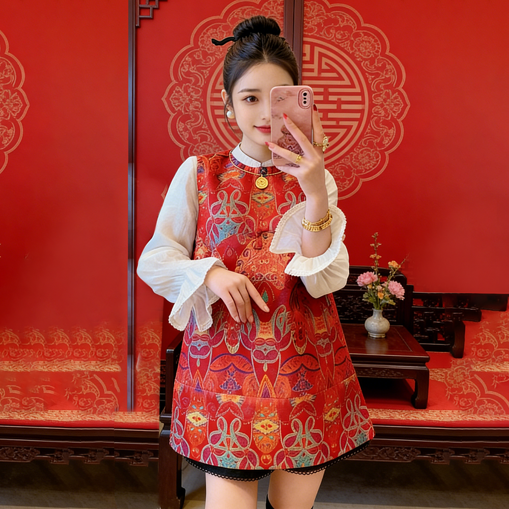 春季套装女2026新款裙新中式国风连衣裙轻奢高级感马甲裙大码胖mm