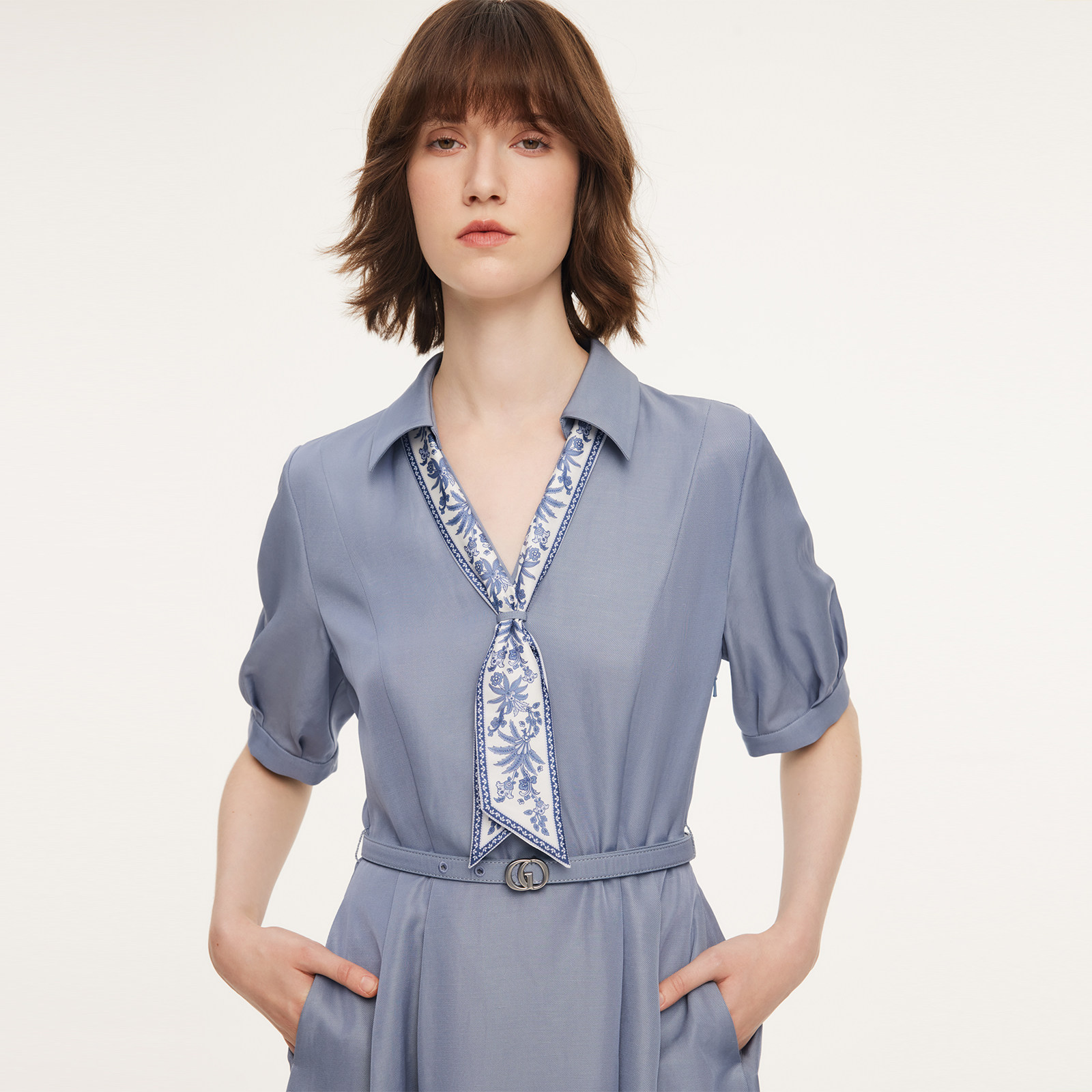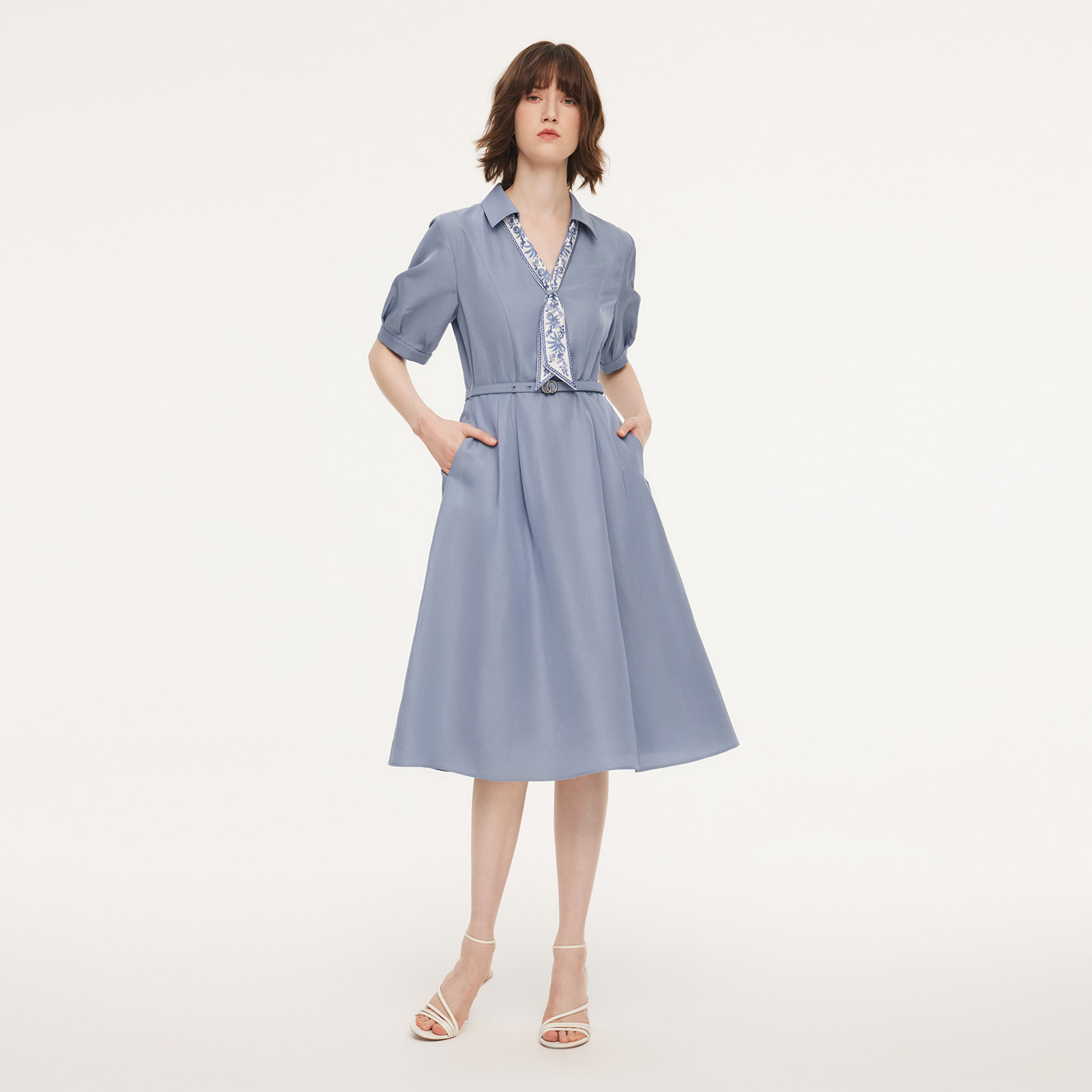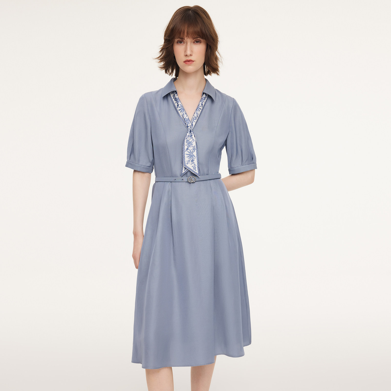 歌莉娅天丝醋酸连衣裙女2026新款春季高级感大方得体轻奢法式裙子