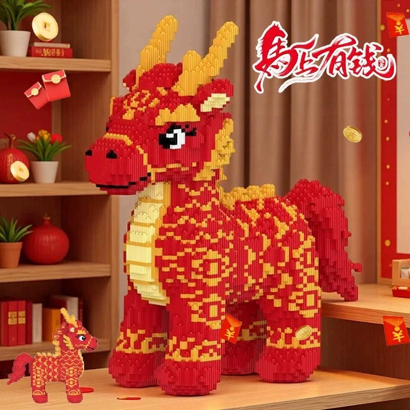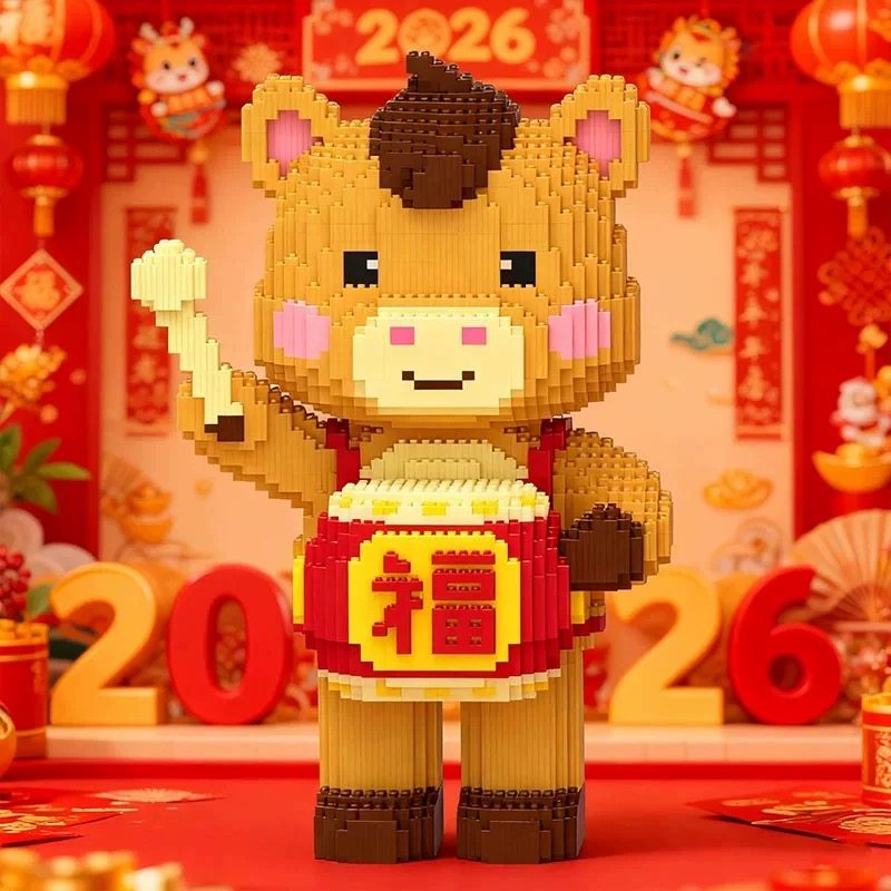 积木财神爷马年2026新款小颗粒拼装玩具成人高难度巨大型客厅摆件