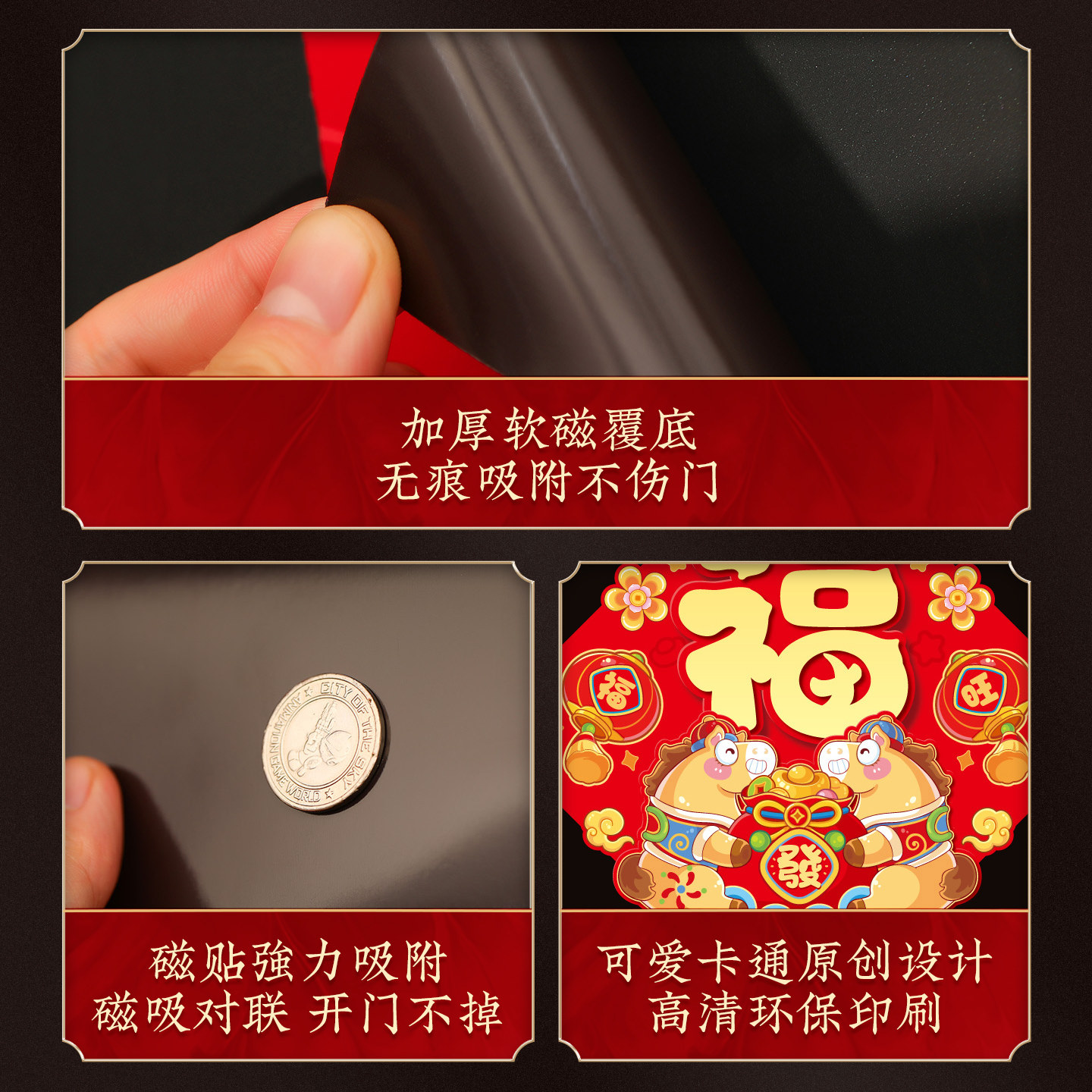 马年2026新款创意磁吸对联过年春节福字入户门贴新年装饰春联布置