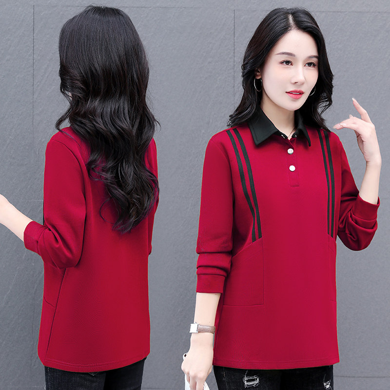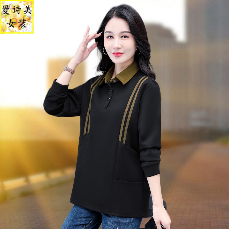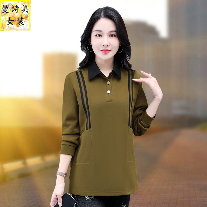polo领中长款长袖t恤女遮屁股2026新款春秋妈妈洋气卫衣女款上衣