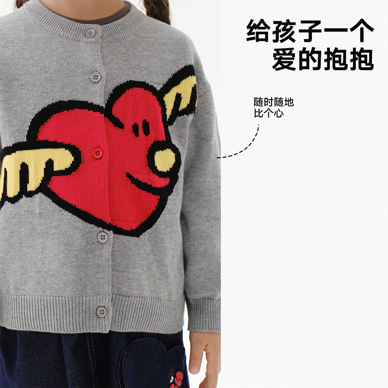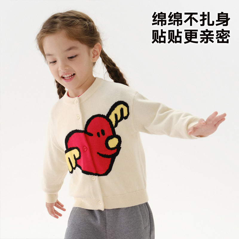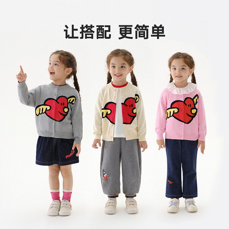 马拉丁童装儿童春装新款女小童小爱心提花红色新年圆领毛衣开衫