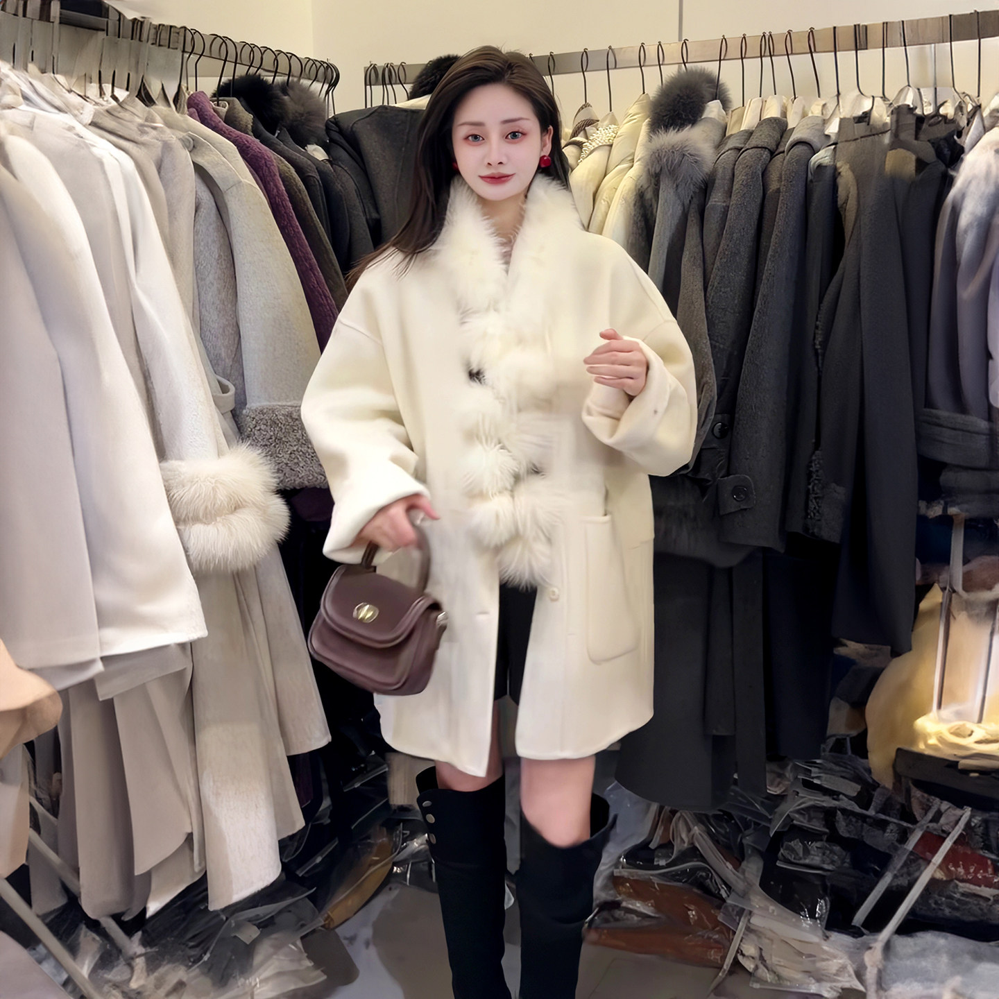 法式大码中长款毛呢外套女2026新款高级感单排扣保暖斗篷呢子大衣