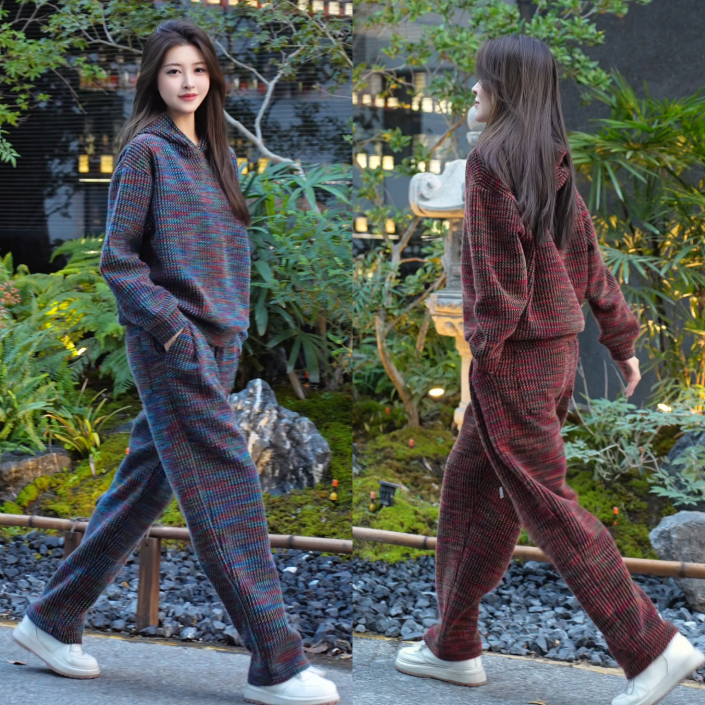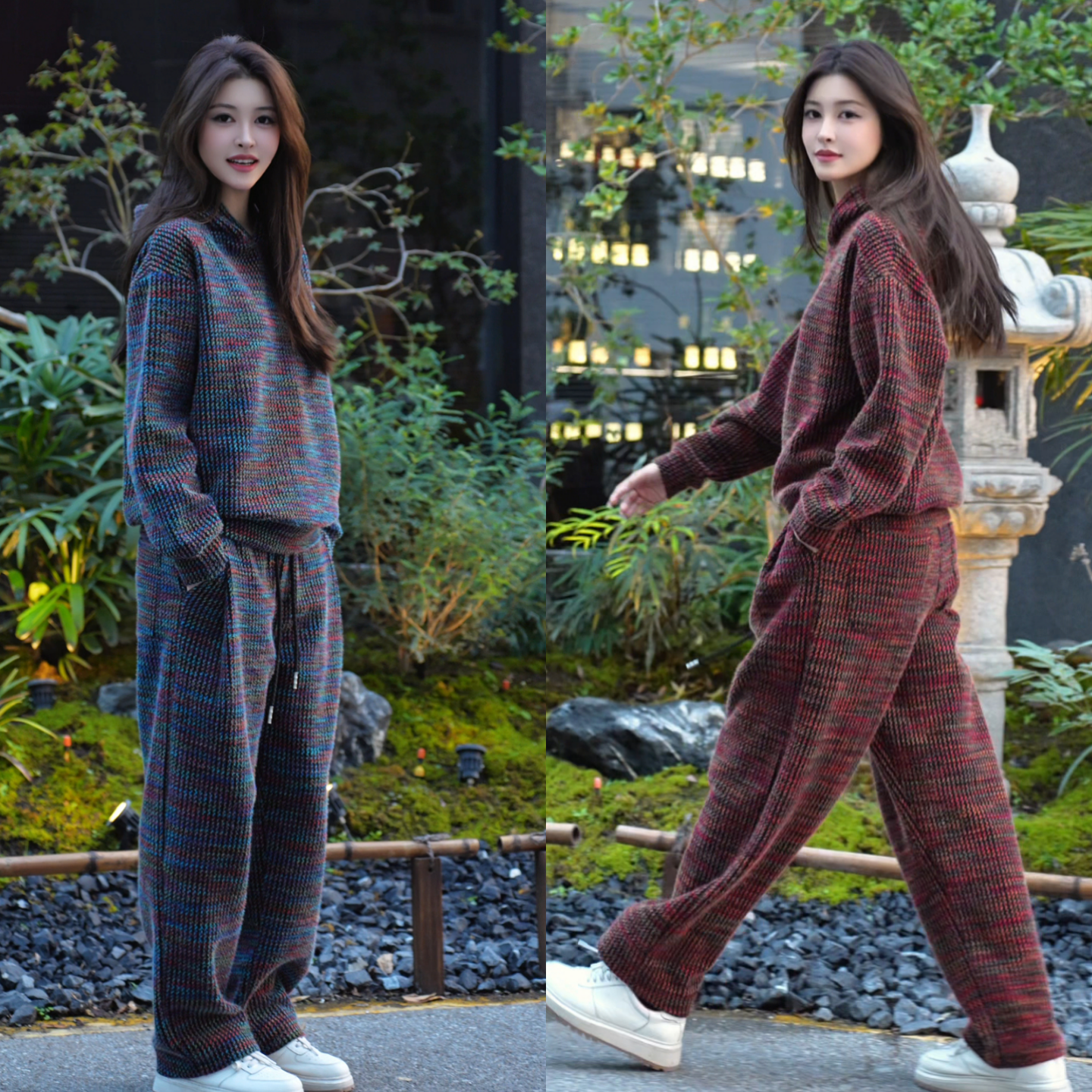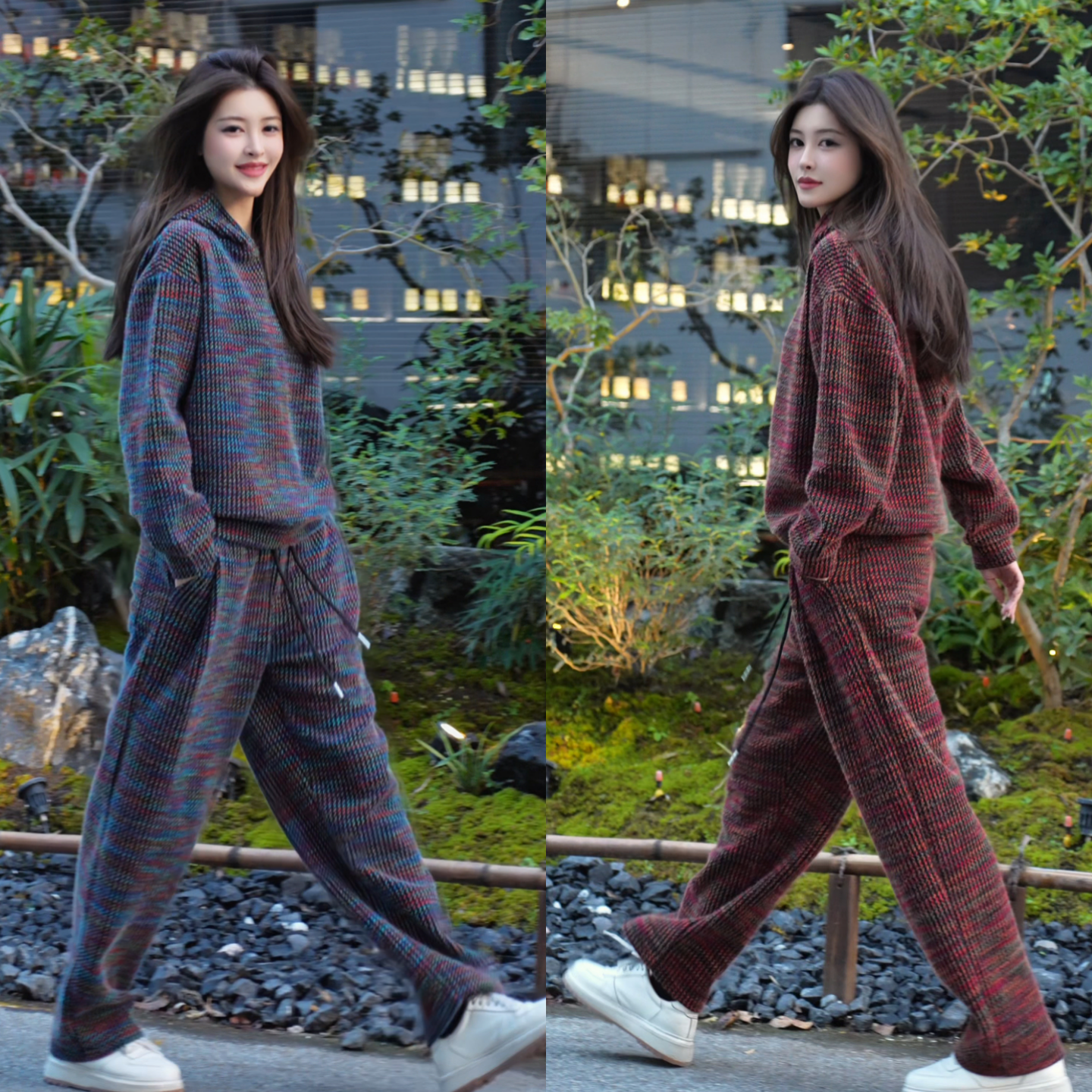 冬季时尚加绒彩色撞色连帽卫衣休闲裤套装男休闲运动两件套男女款