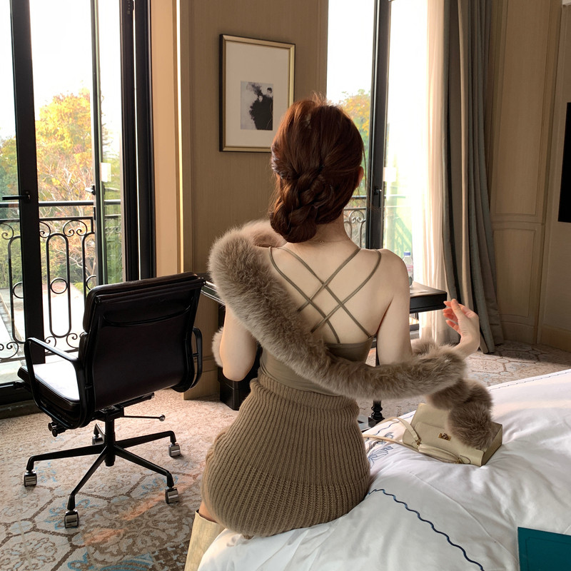 M900针织开衫外套吊带连衣裙百搭套装女秋冬修身辣妹气质两件套