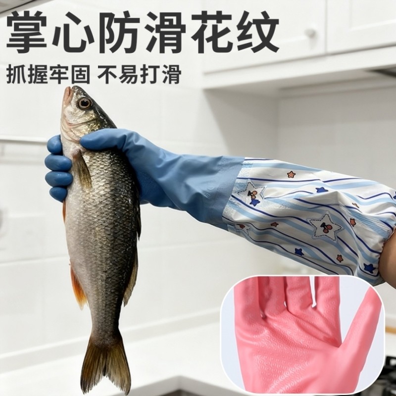 加长橡胶手套家务洗碗厨房耐用防水胶皮加绒加厚男女清洁洗衣专用