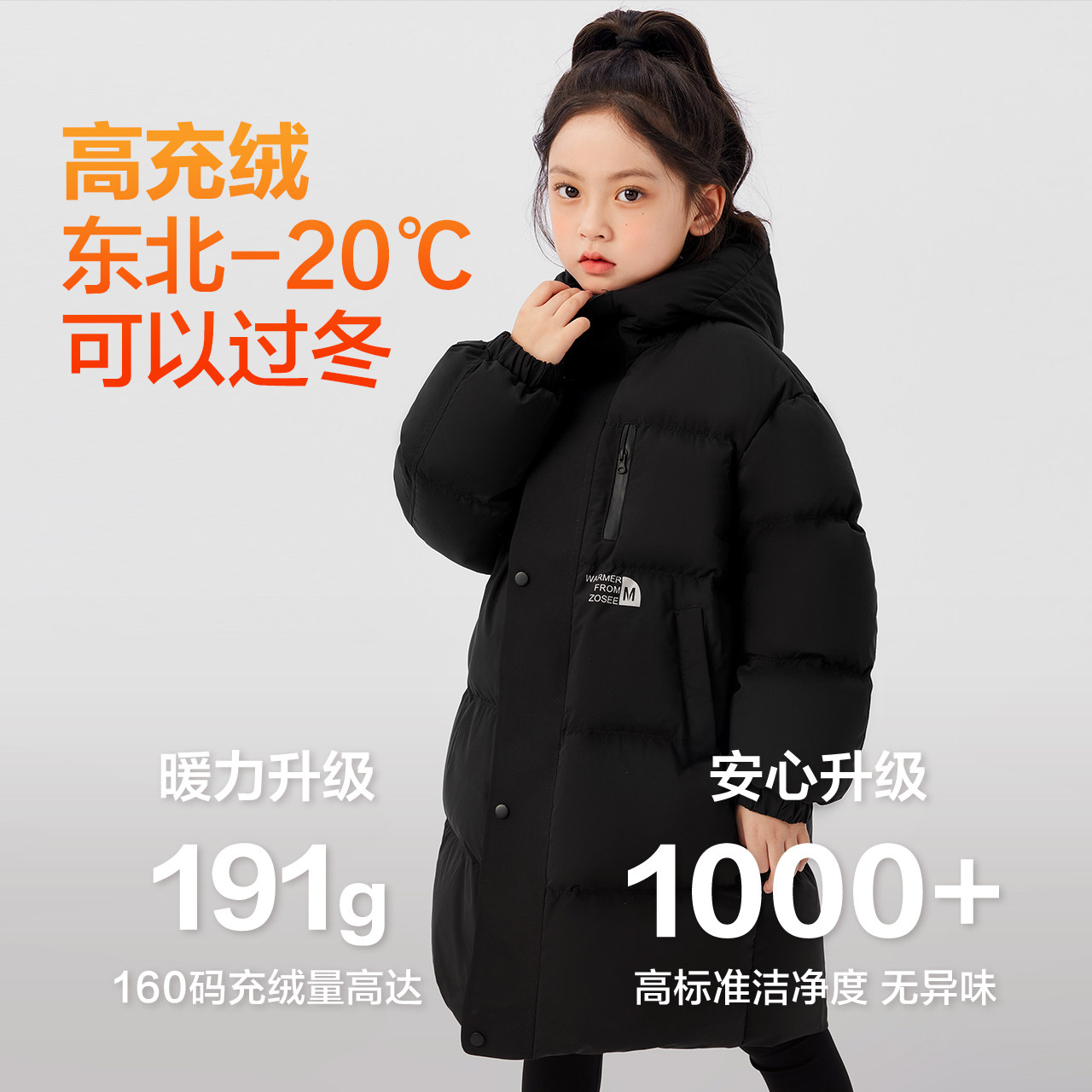 左西女童羽绒服冬季长款加厚2026新款儿童白鸭绒极寒黑金保暖外套