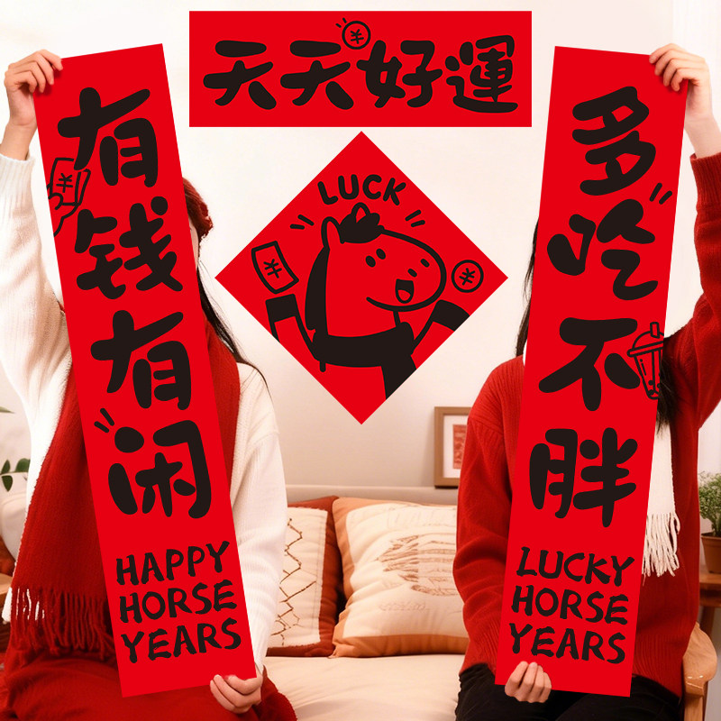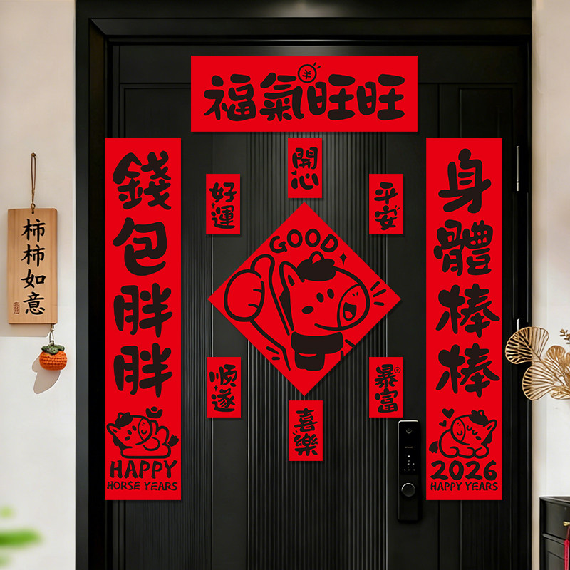 马年新年对联门联2026新款创意春联自带背胶春节装饰大门入户门贴