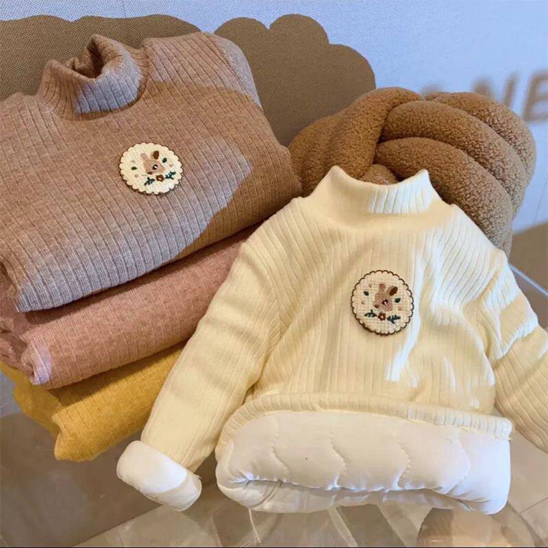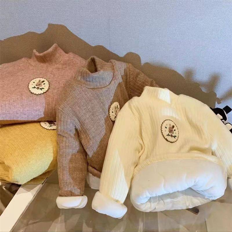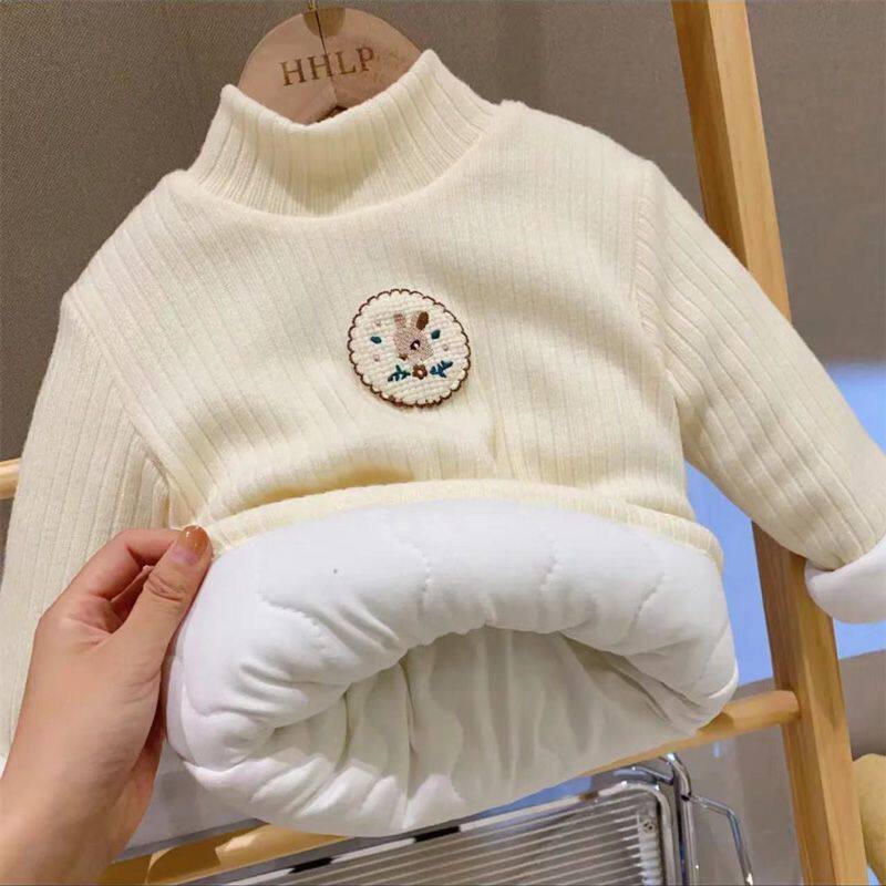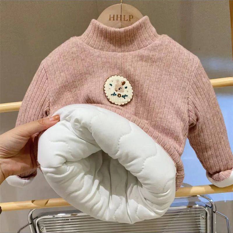 儿童宝宝棉袄冬加绒加厚男女童半高领卡通卫衣婴儿保暖打底衫上衣