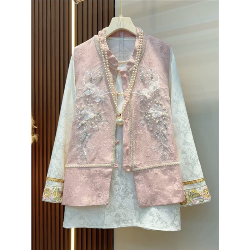 2026春季新款大码女装新中式国风上衣胖mm显瘦遮肉马甲长袖打底衫