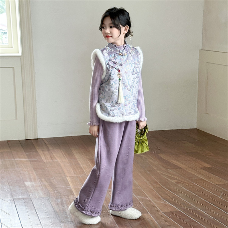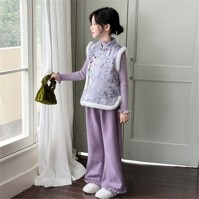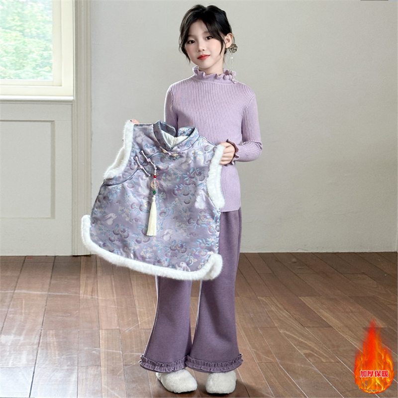 女童新中式国风套装冬装2026新款洋气儿童秋冬季加绒马甲裤子年服