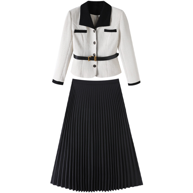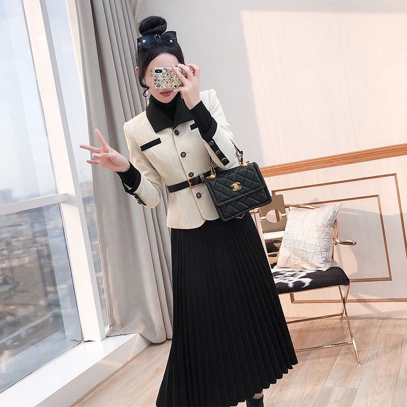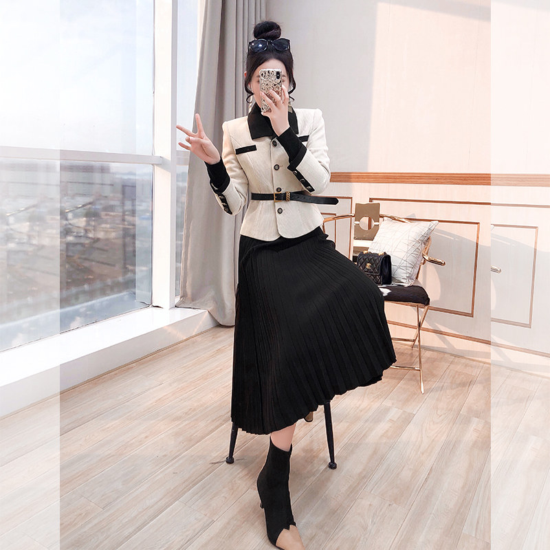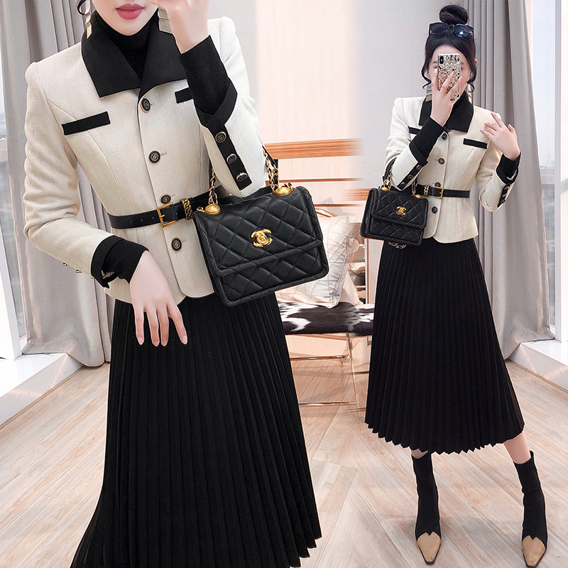 职业套装高级感气质2026年新款冬装女装西装裙子外套百褶裙两件套
