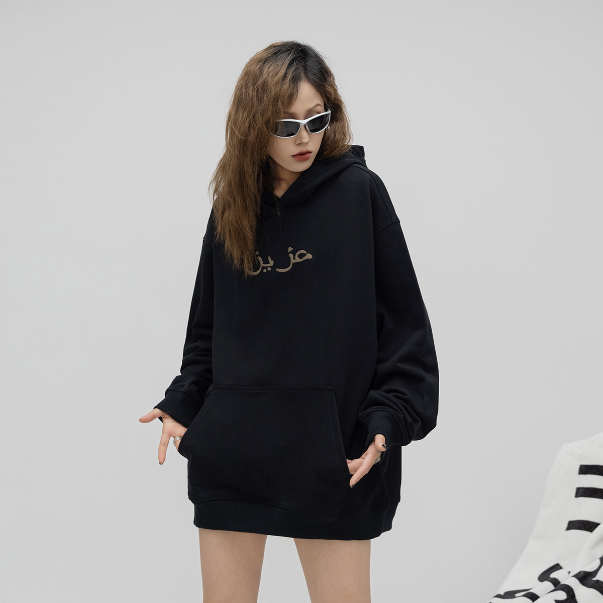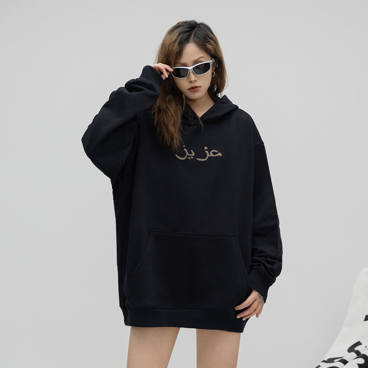 ONE PASS 潮牌发泡印花连帽卫衣男女款2023春季新款情侣宽松上衣