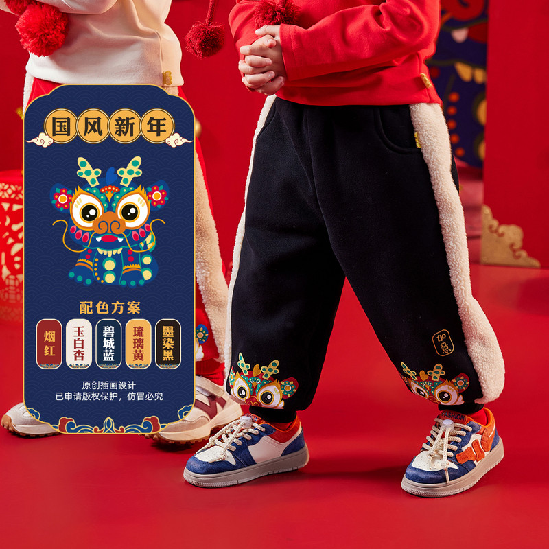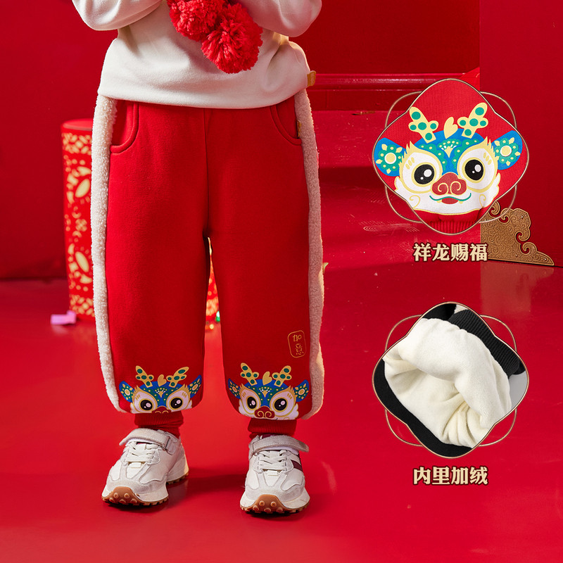 儿童裤子拜年服宝宝加绒过年衣服童装男童冬装小童喜庆年服女