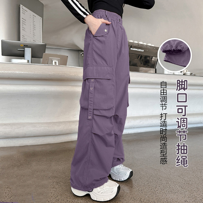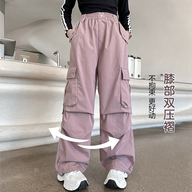 女童工装裤冬装儿童加绒裤子大童阔腿裤冬季初中生女孩运动裤春款