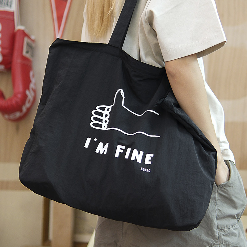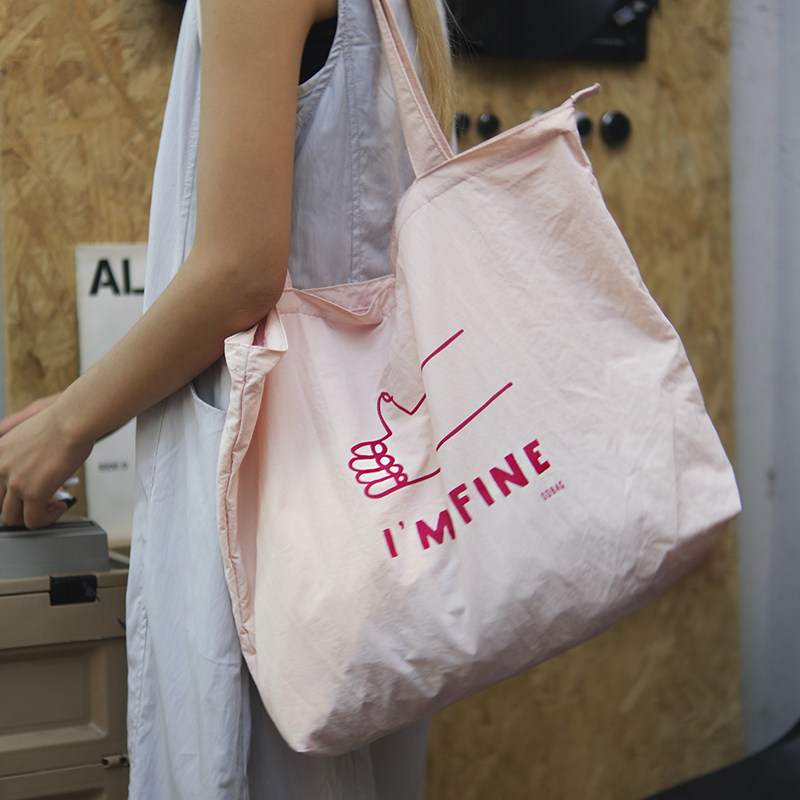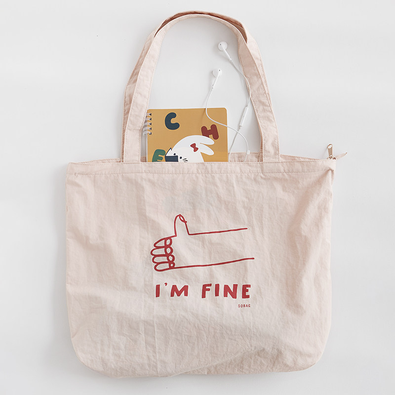 sobag日系彩色轻便小众尼龙帆布单肩包包女百搭大容量拉链托特包