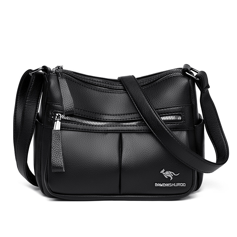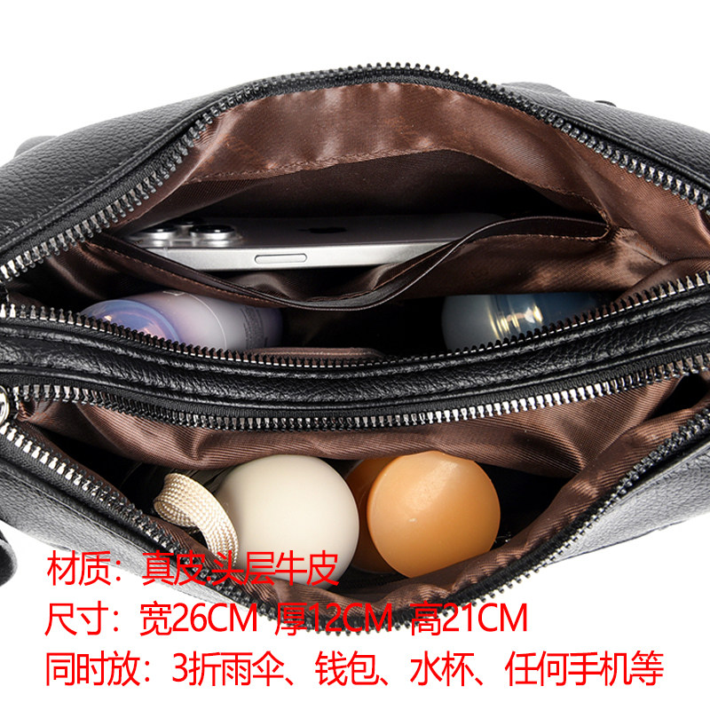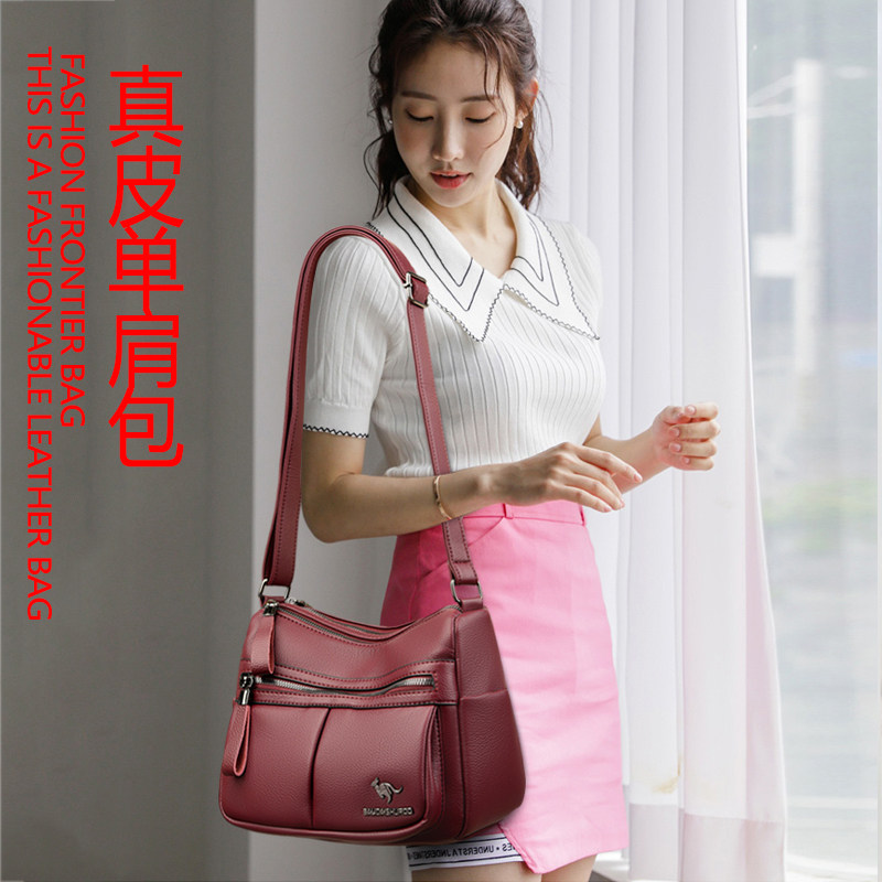 袋鼠真皮女包斜挎包女款包包2025新款单肩包中年妈妈包多层软牛皮