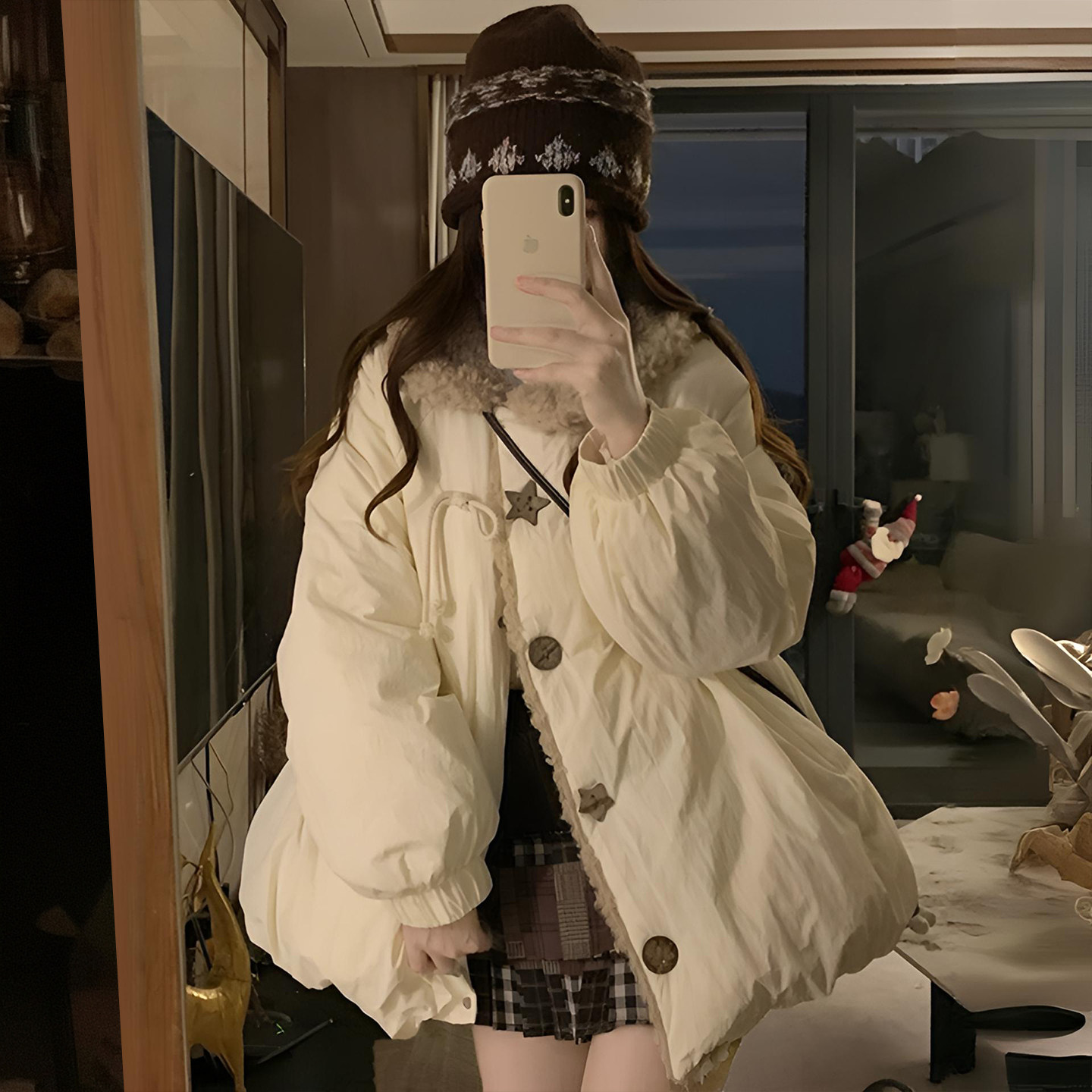 300斤特大码米色可爱风夹棉棉服外套女冬季新款胖mm减龄百搭棉衣