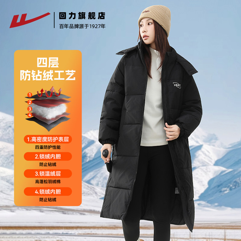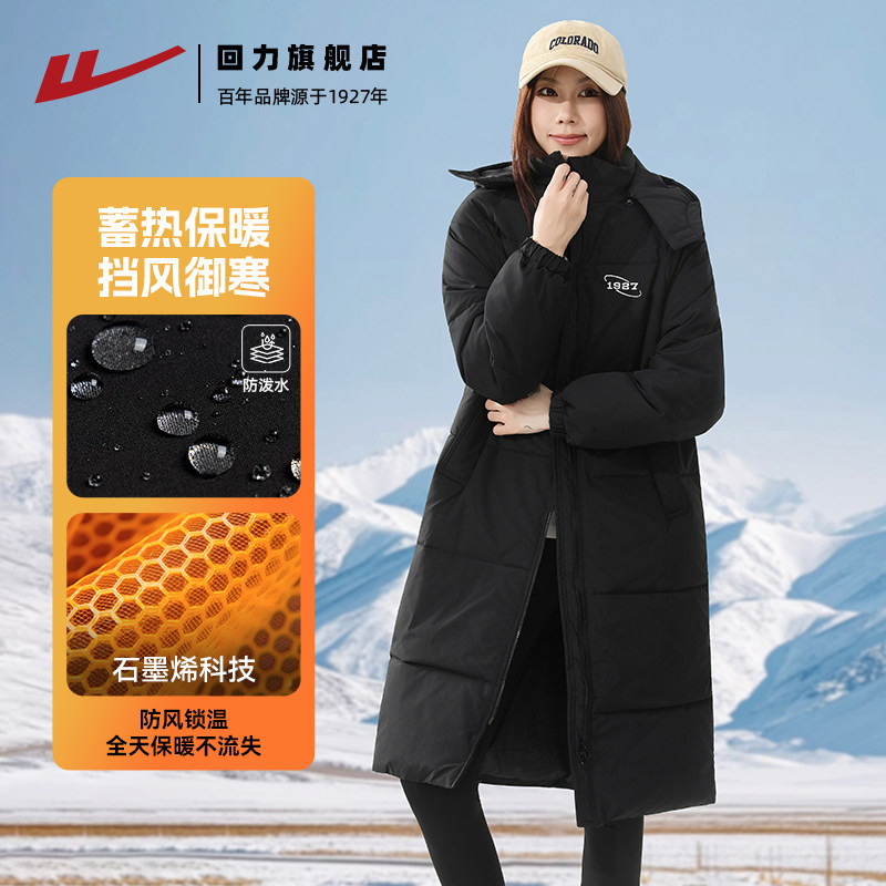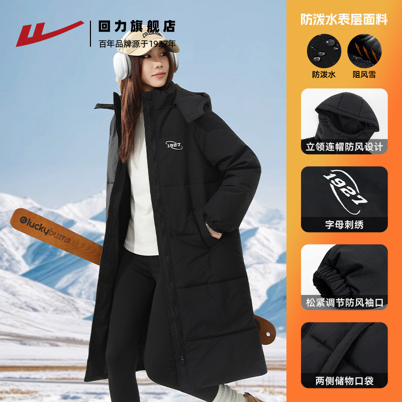回力中长款羽绒棉服女2025冬季新款韩版宽松棉袄加厚连帽棉衣外套