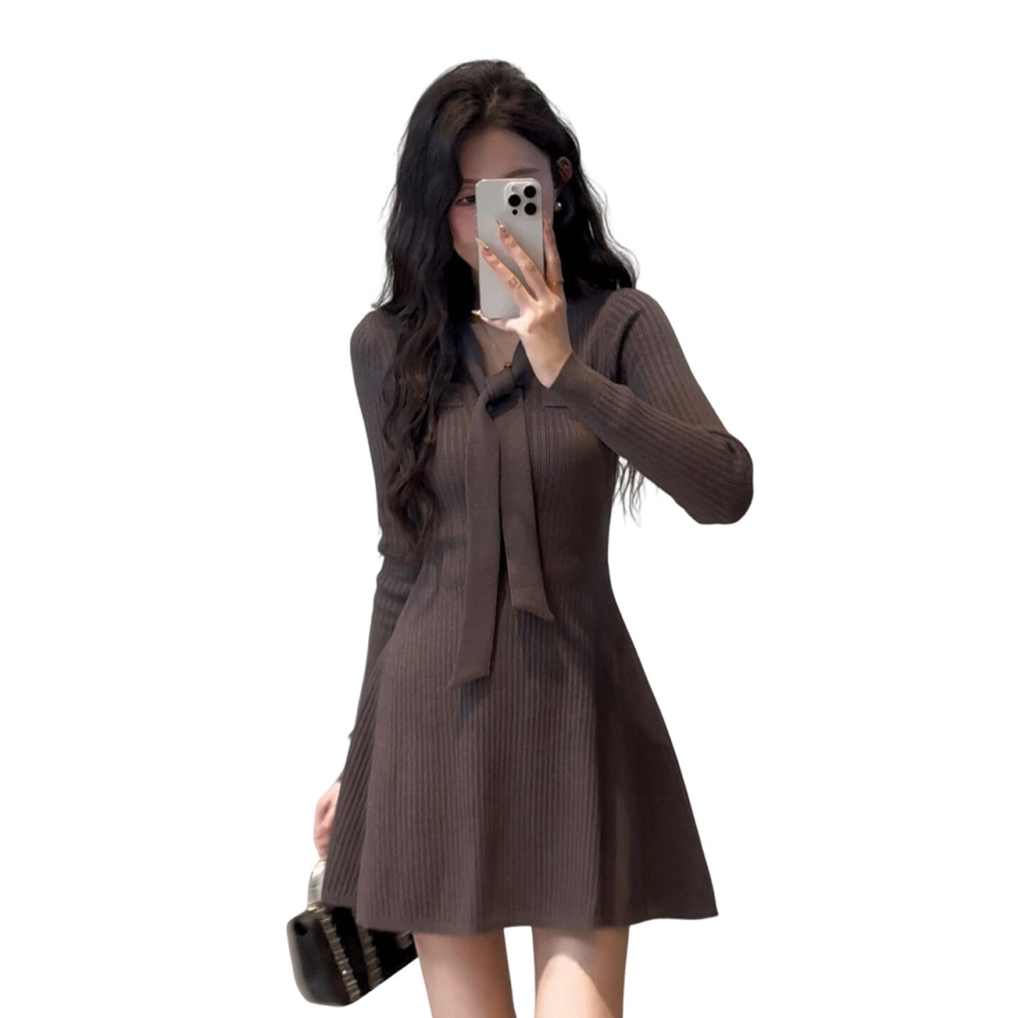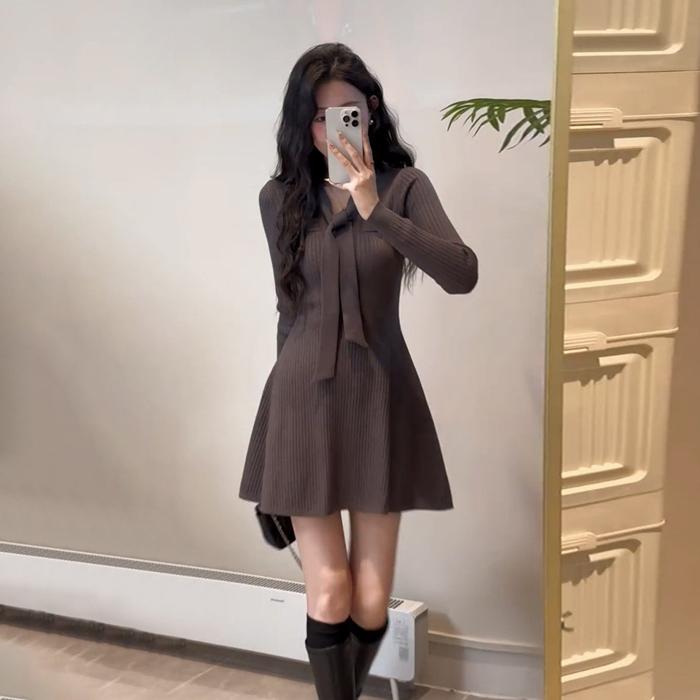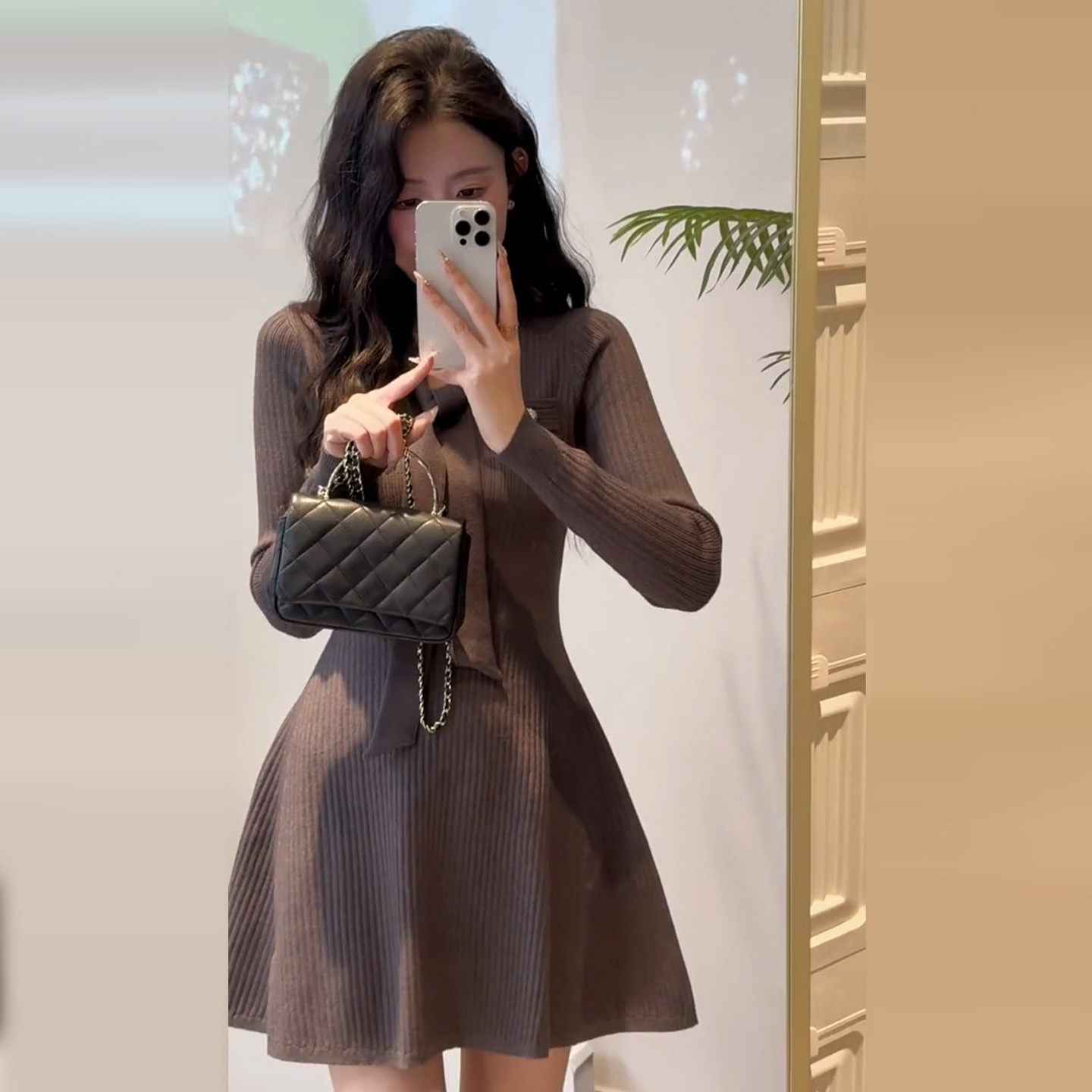 法式气质针织连衣裙子女秋冬季2026新款高级感小个子收腰a字短裙