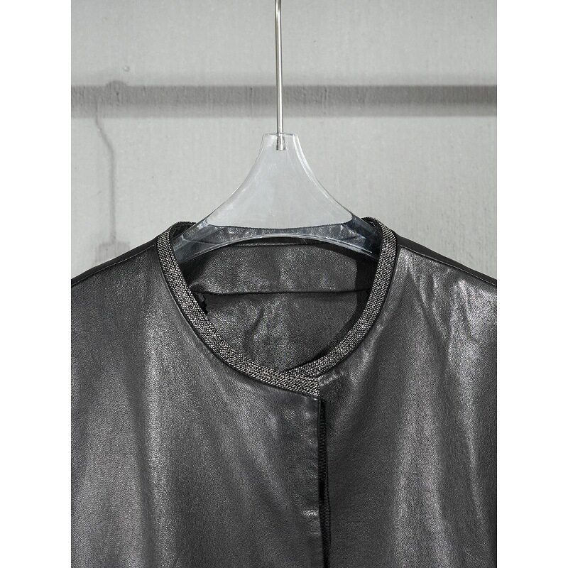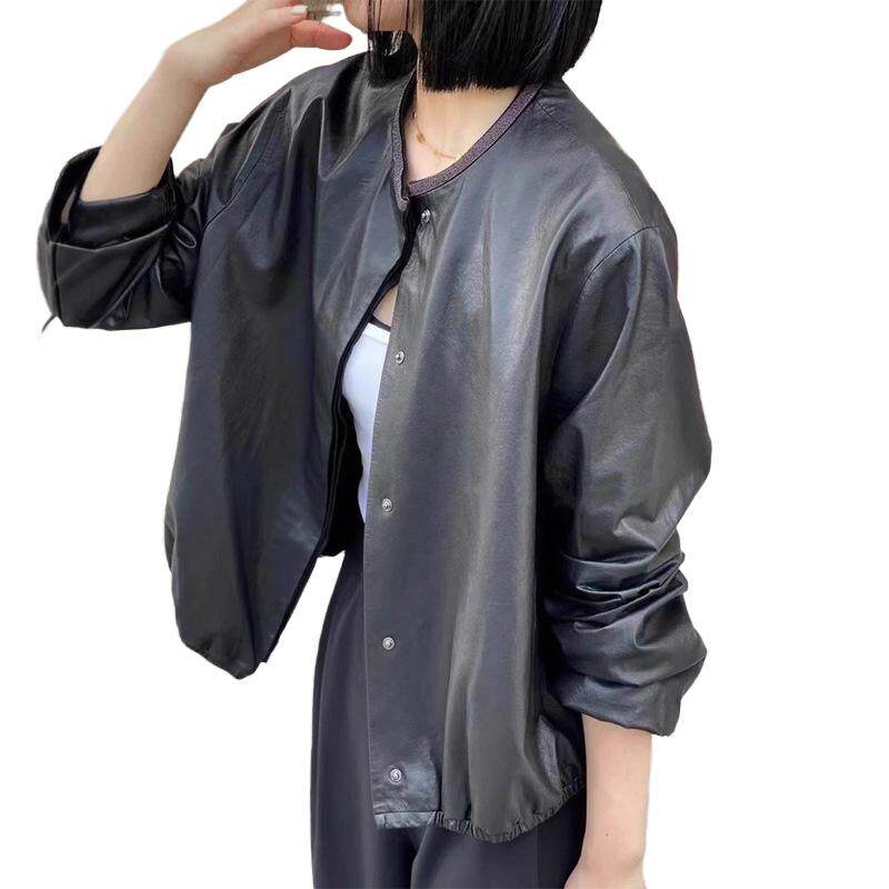 2025秋冬宽松圆领通勤薄款植鞣绵羊皮皮衣外套女真皮皮夹克短款