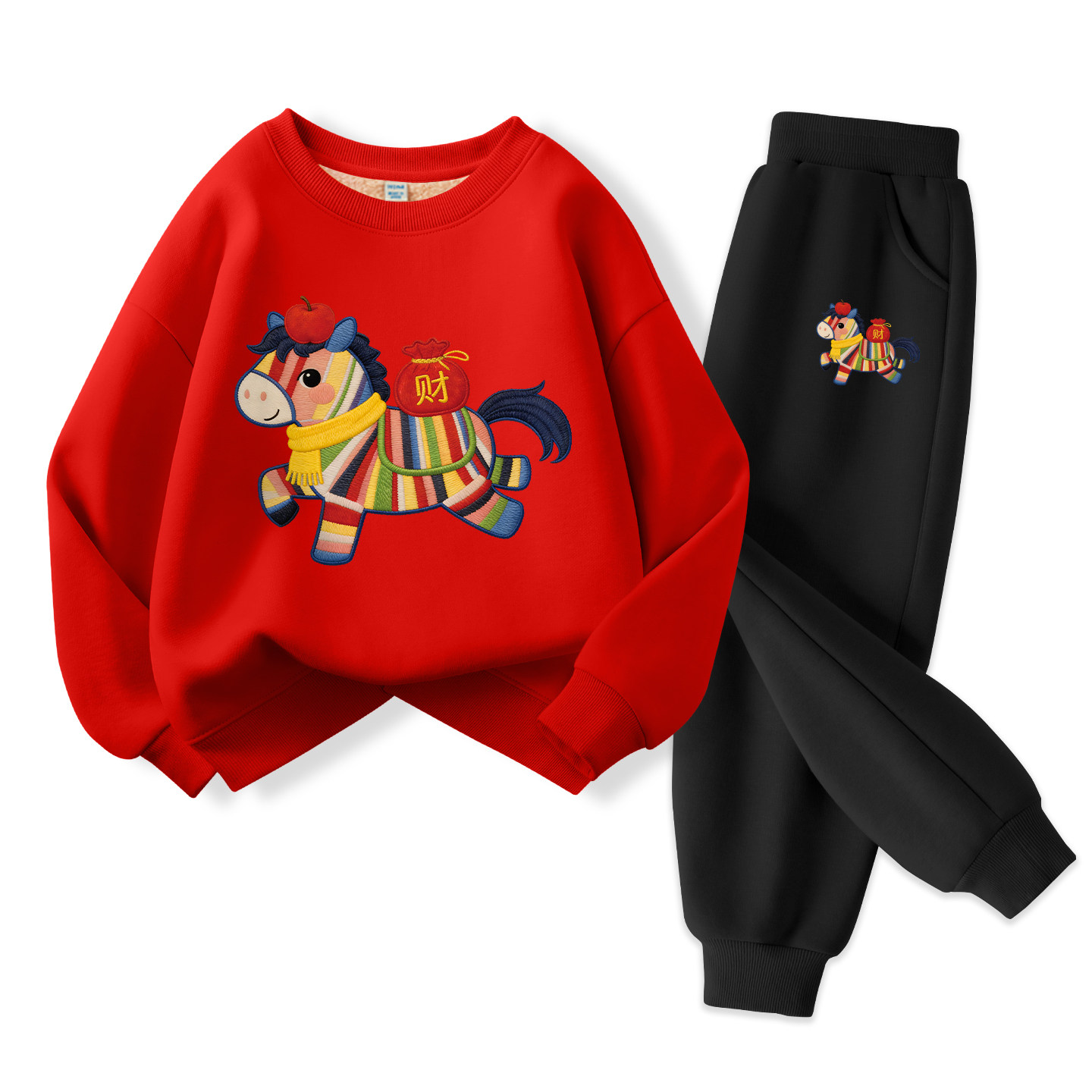 真维斯男童本命年12岁套装加绒红色卫衣女童新年过年服儿童拜年服