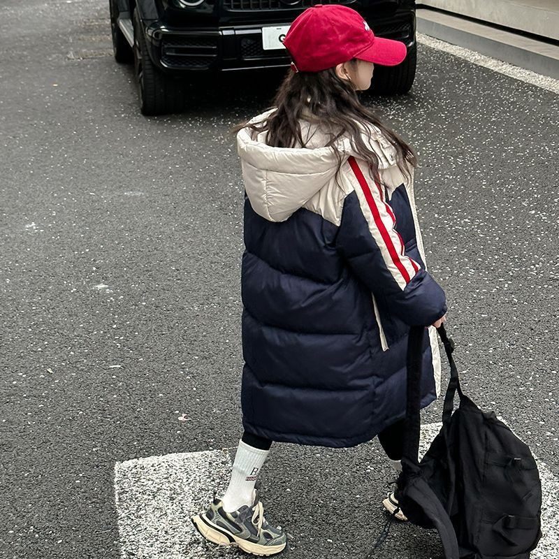 儿童2024新款长款过膝羽绒棉服洋气韩版时髦拼色棉袄宝宝中大童潮