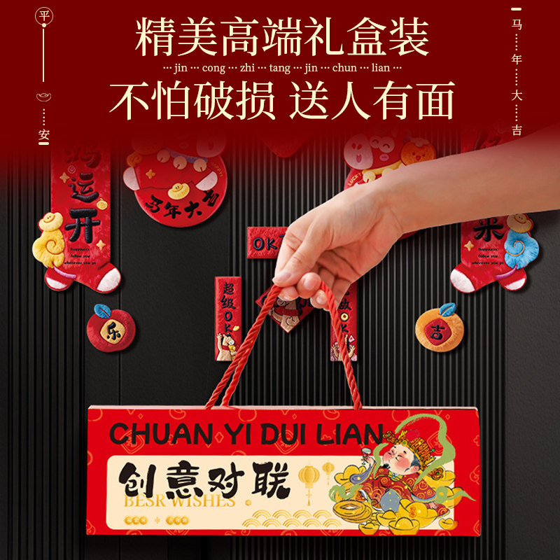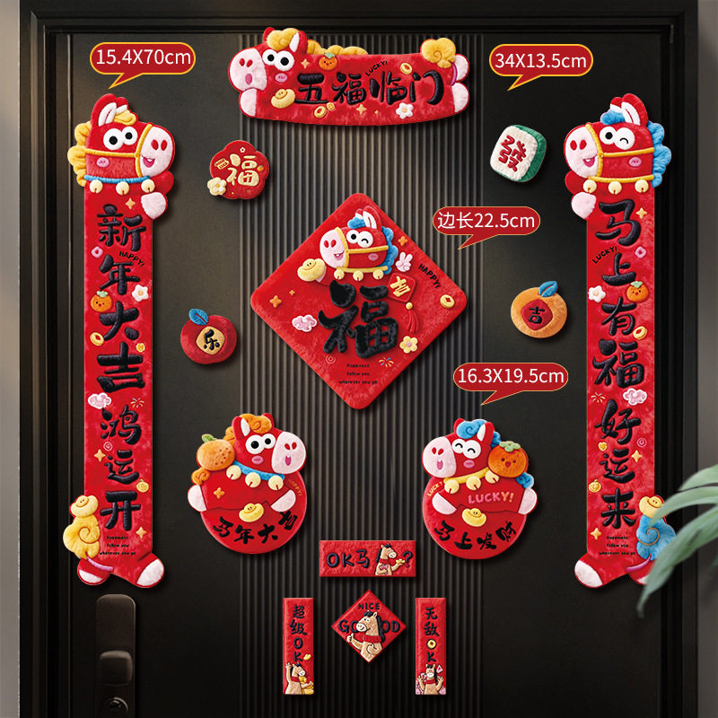 新春马年对联春联2026新款新年春节全磁吸门贴高档5d立体创意装饰