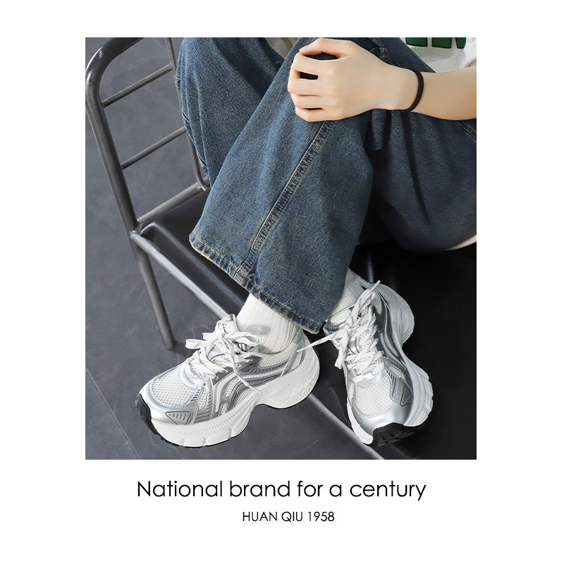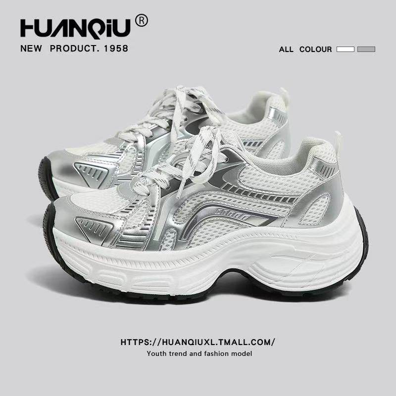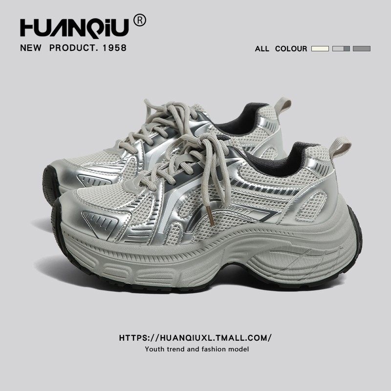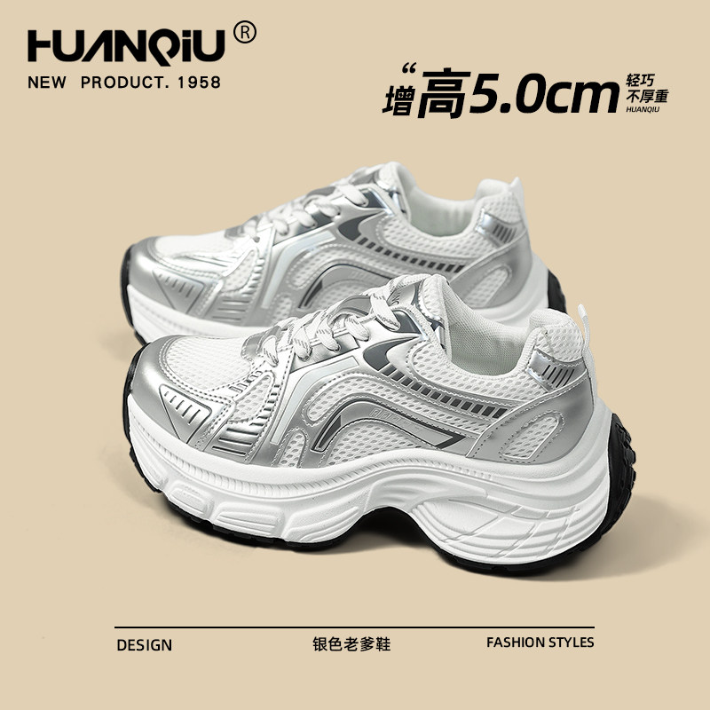 环球银色老爹鞋女款冬季加绒小个子增高厚底轻便软底超轻运动鞋子
