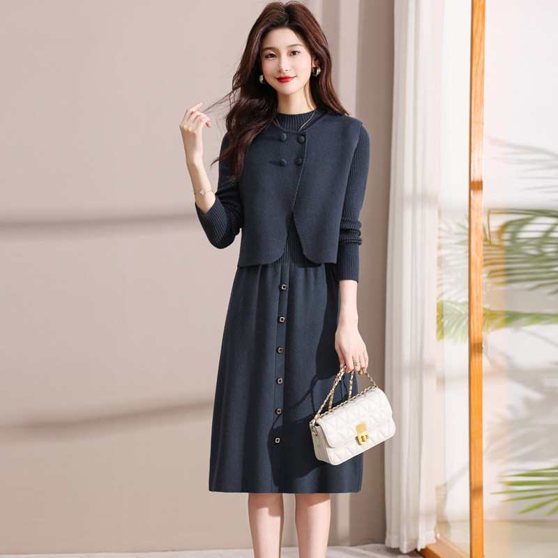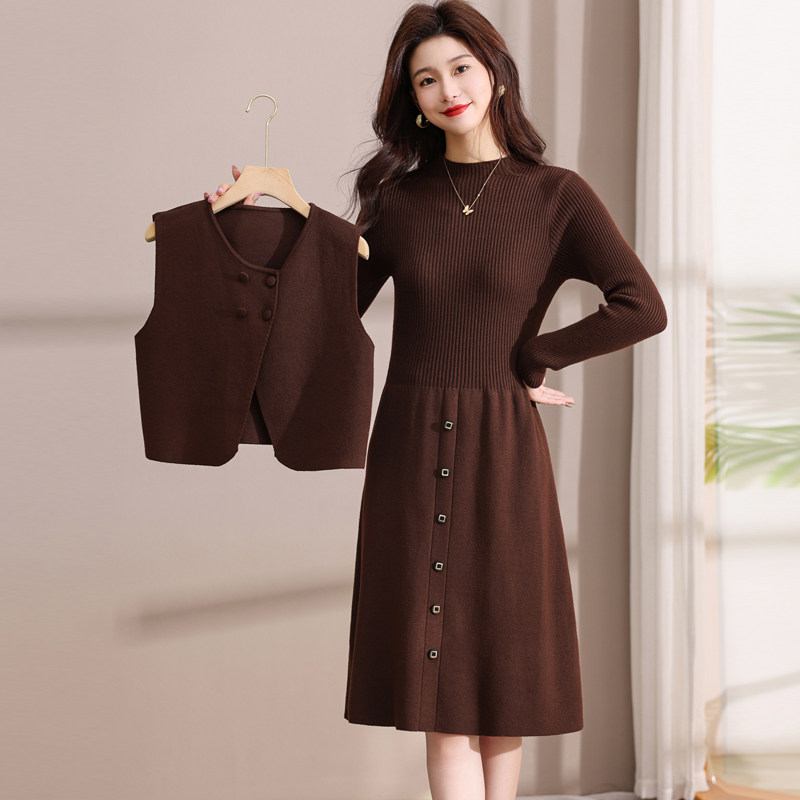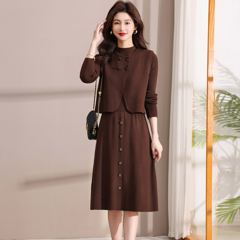 311线报网描述:中长款毛衣裙+小香风马夹,超值免搭2件套装