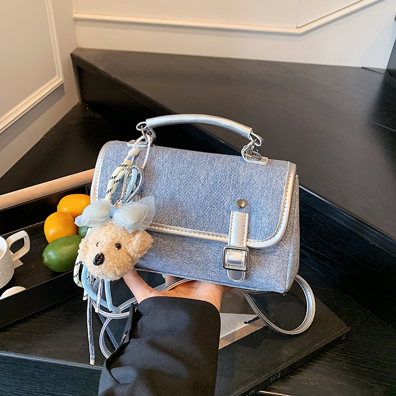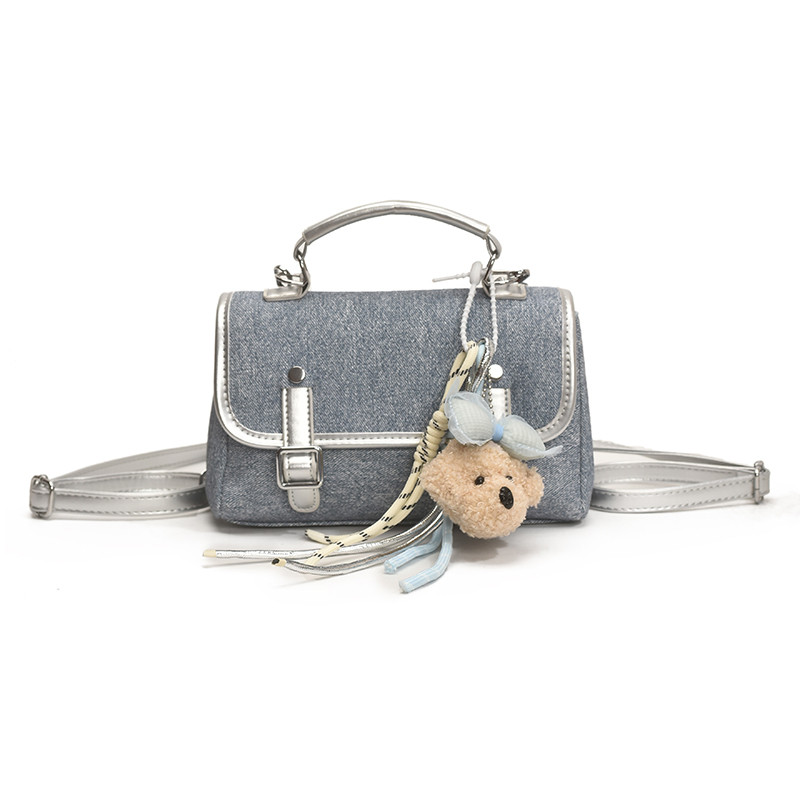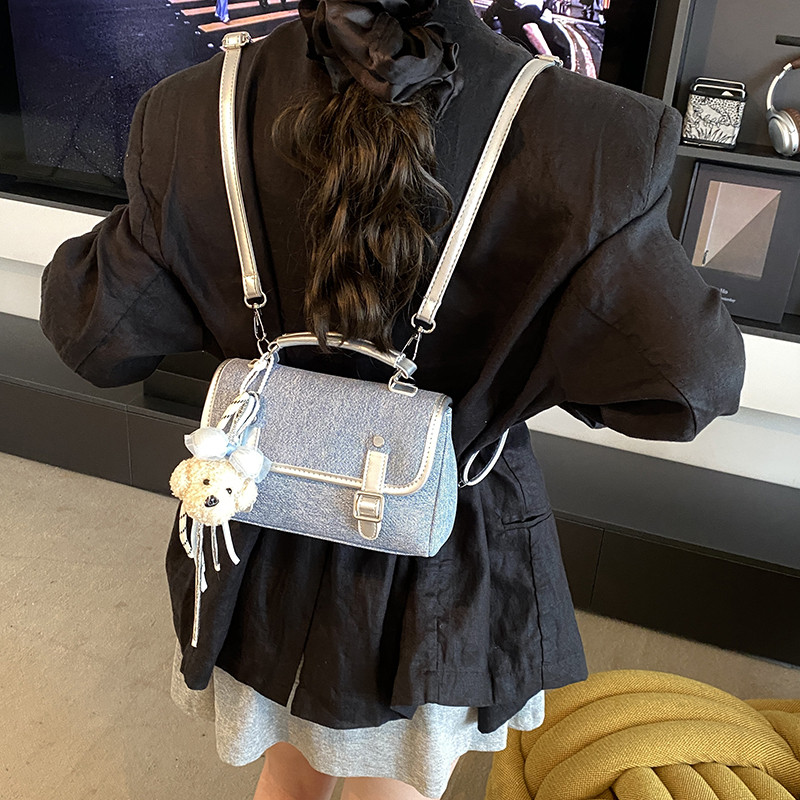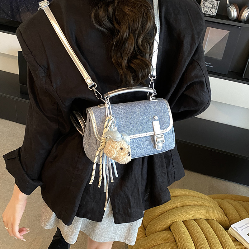 高颜值牛仔蓝皮质双肩包背包小众超火手拎包包女款手机迷你单肩包