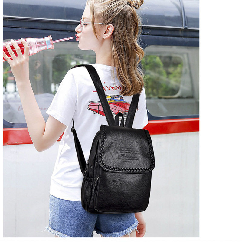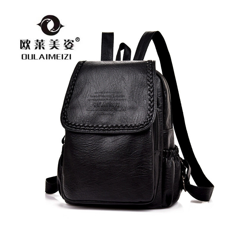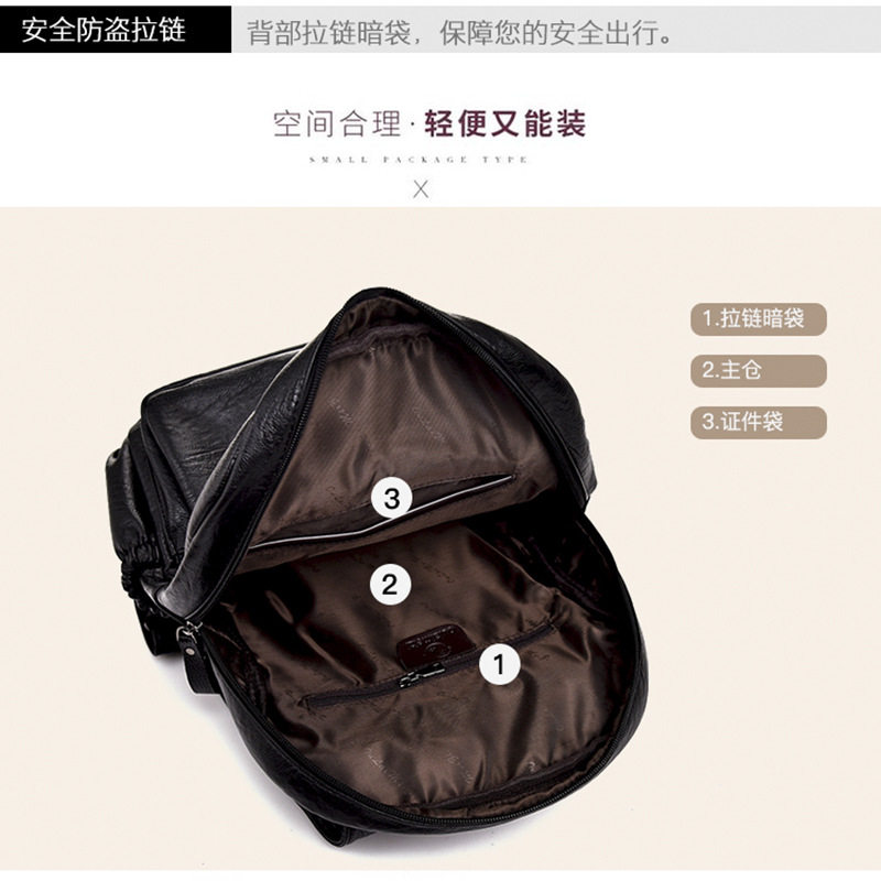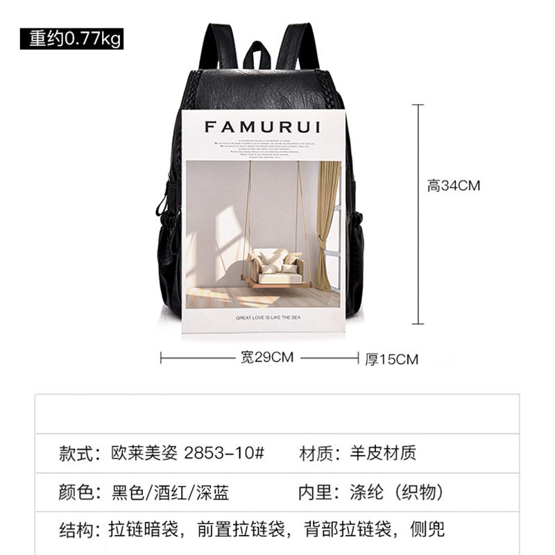 新款双肩包女士休闲时尚袋盖包包女款背包新潮韩真皮质感学生书包