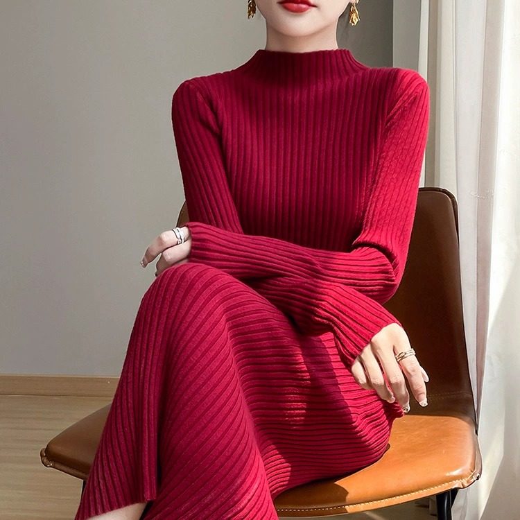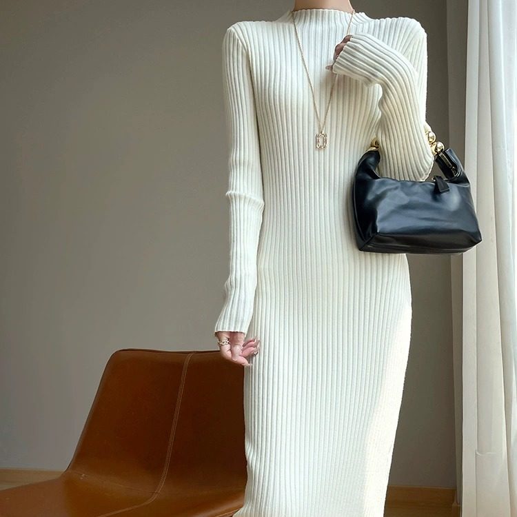 配大衣内搭毛衣裙女秋冬高级感百搭过膝长款半高领打底针织连衣裙