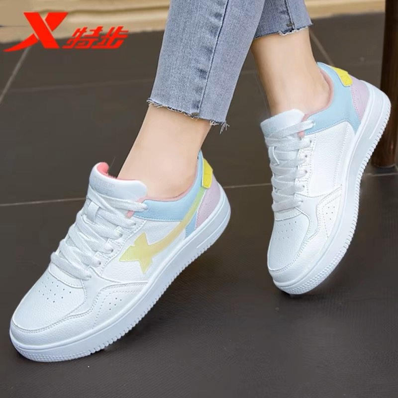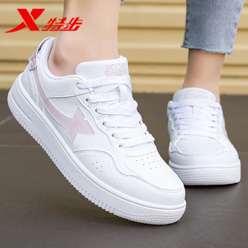 特步女鞋板鞋皮面2026新款秋冬白鞋透气鞋子旗舰店女款软底运动鞋