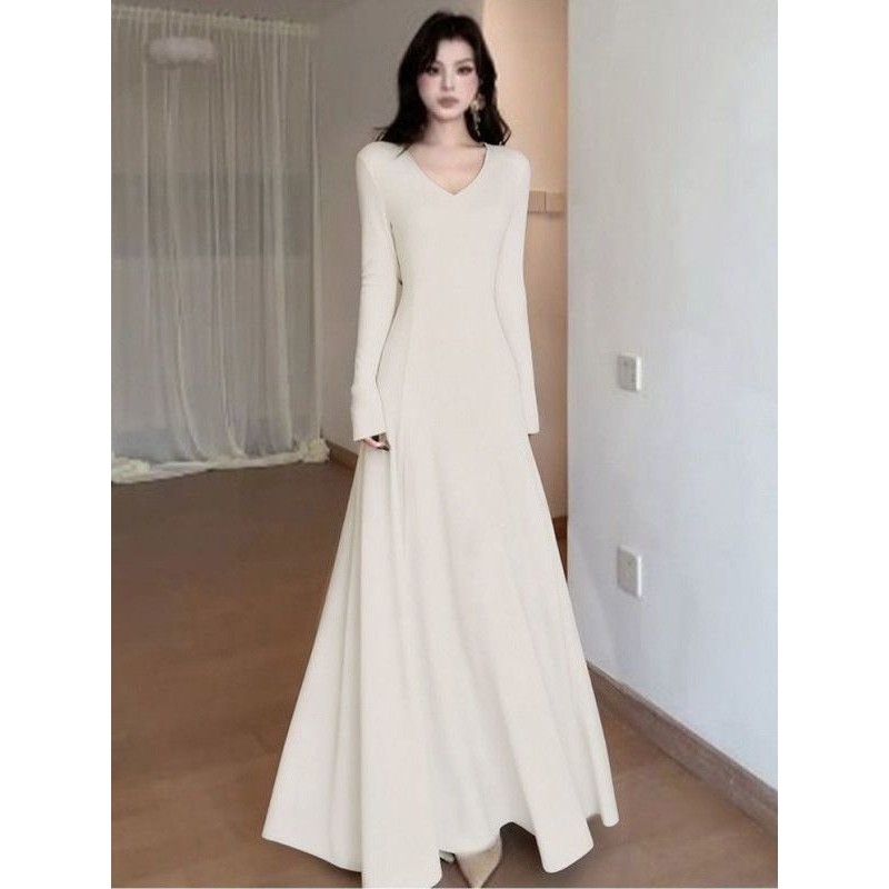 大衣内搭白色针织连衣裙女秋冬修身长裙裙子长款打底冬季加绒加厚