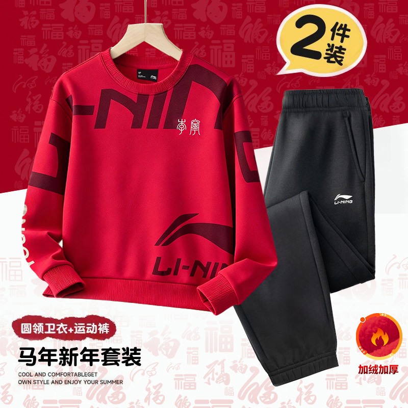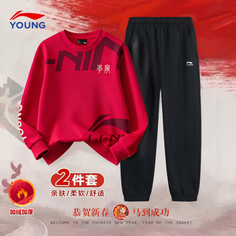 李宁儿童套装女童男童新款中大童红色运动本命年拜年服卫衣套装