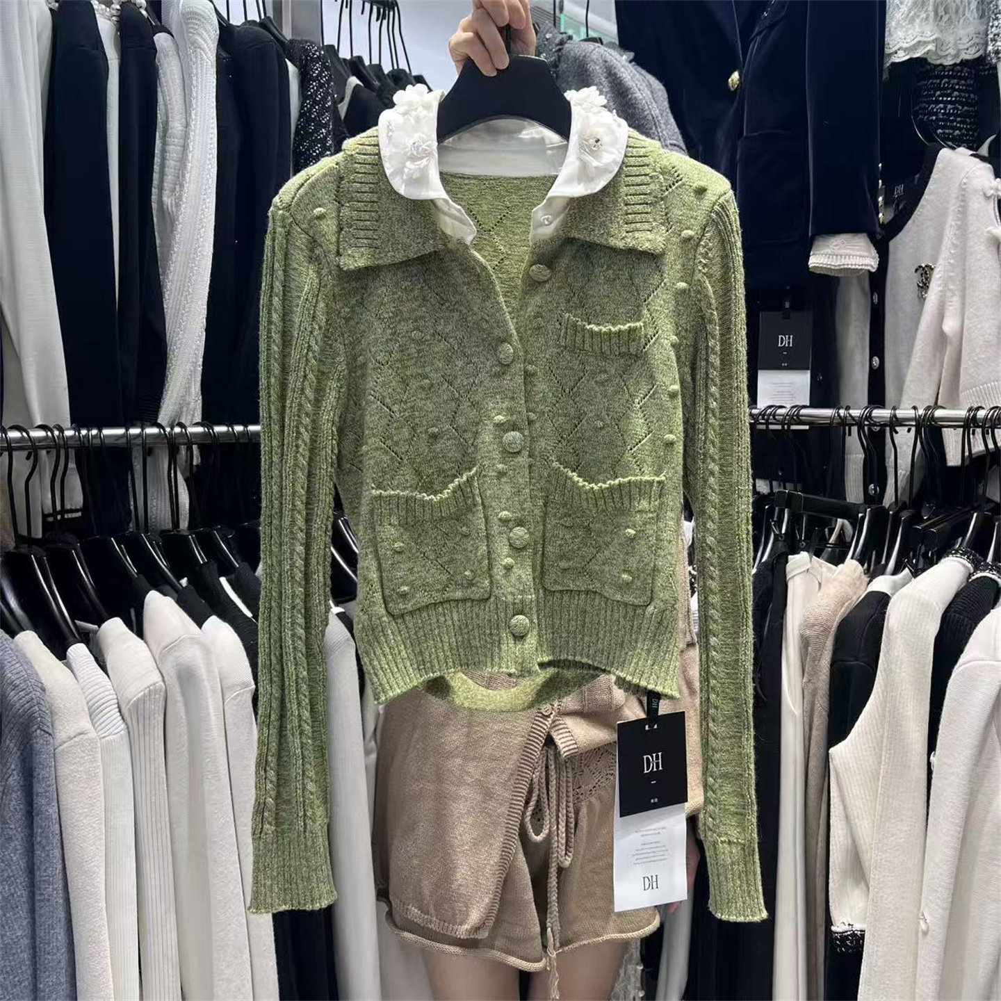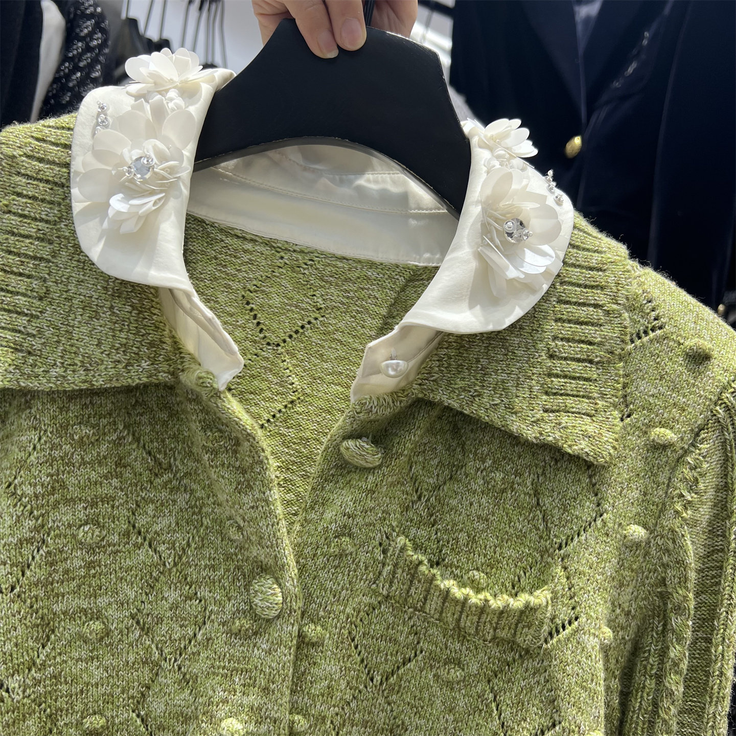 2026早春新款法式小众花边领单排扣轻奢名媛百搭小香风针织外套