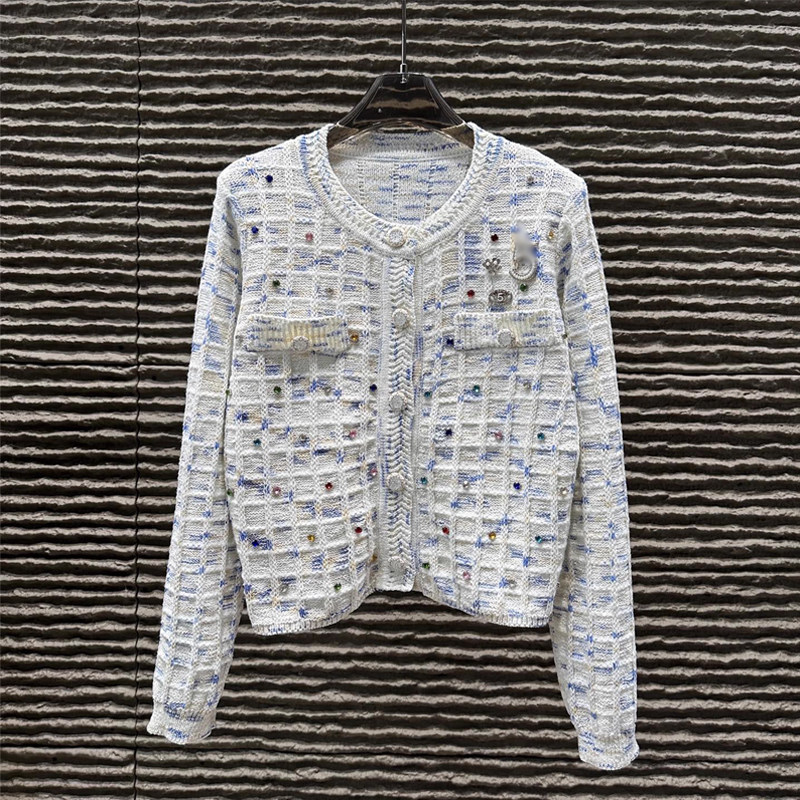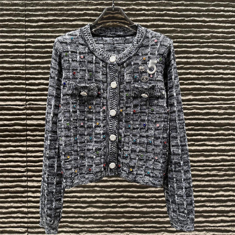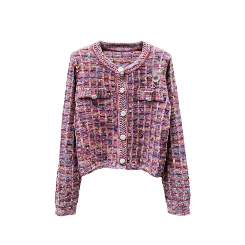 2026早春新款小香风数字5撞色针织开衫女圆领毛衣外套单排扣上衣