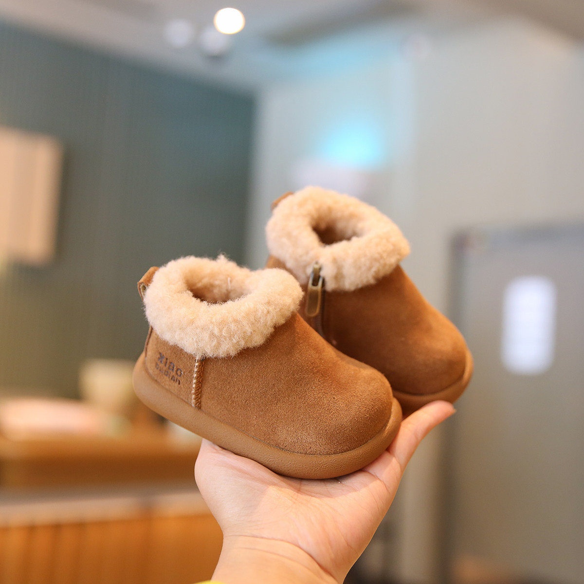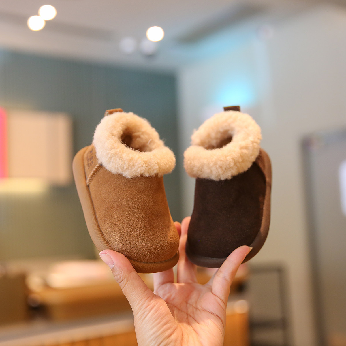 宝宝冬季棉鞋加绒加厚软底女宝学步鞋毛毛鞋婴幼儿鞋子男童雪地靴