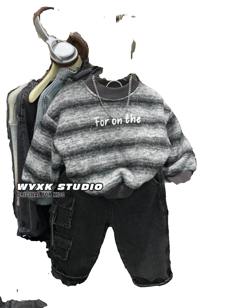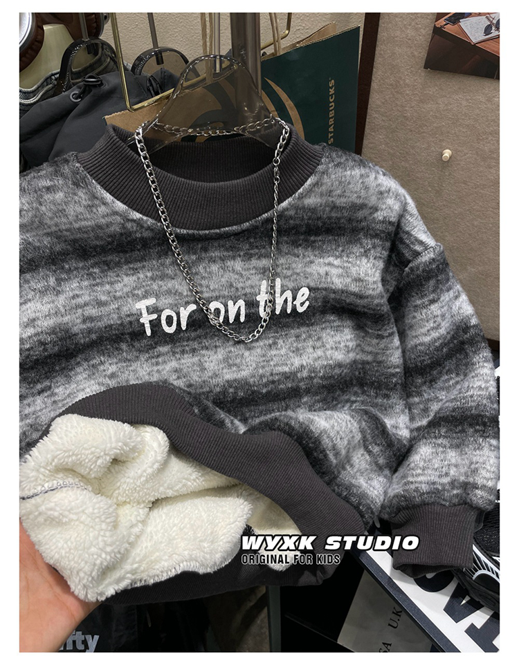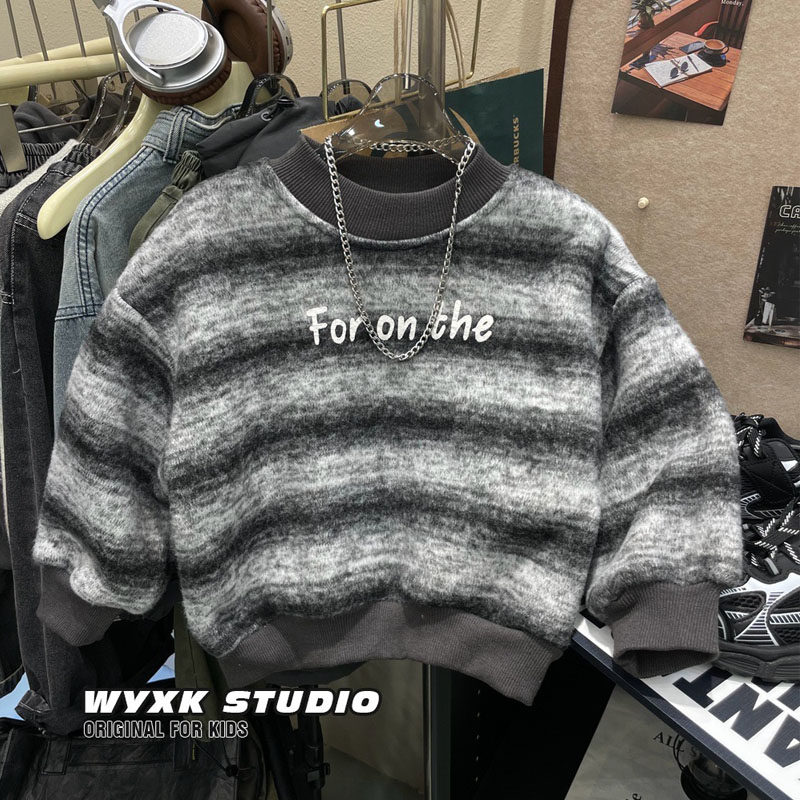 男童条纹卫衣加厚羊驼绒保暖冬装中小儿童宝宝帅气男孩长袖上衣潮