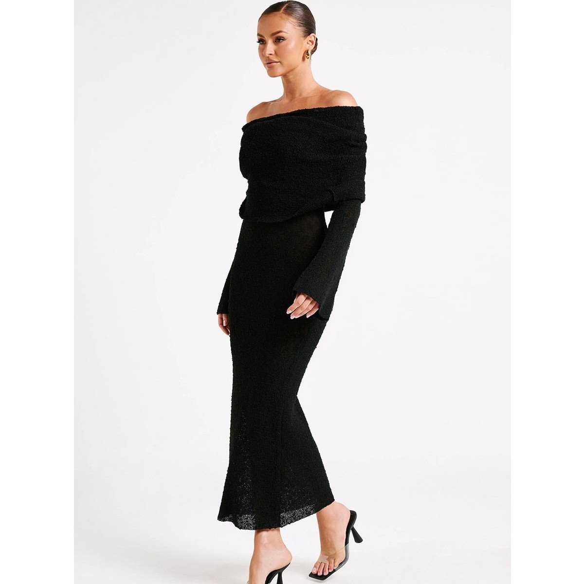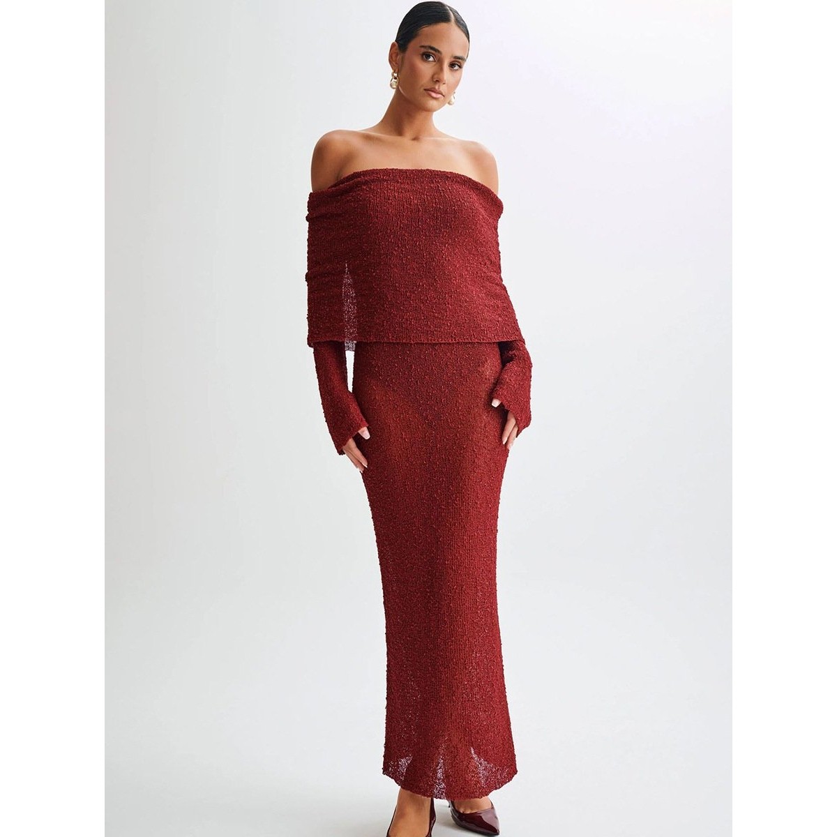跨境爆款夏季欧美性感露肩一字领沙滩罩衫修身长款针织连衣裙